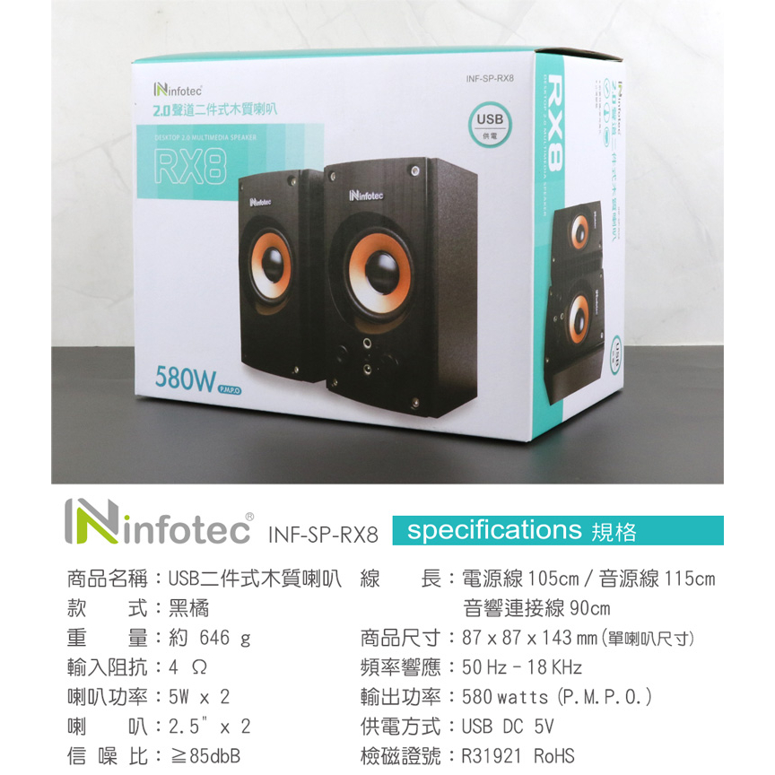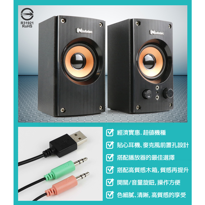 infotec 二件式 2.0聲道 木質USB多媒體喇叭【現貨】USB供電 喇叭 電腦喇叭 木箱喇叭 USB喇叭新款RX8|舊款S288Speakersaibo 3C生活館