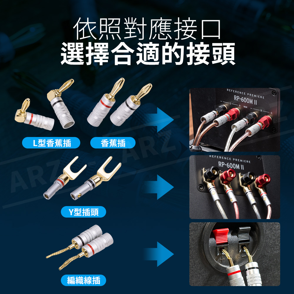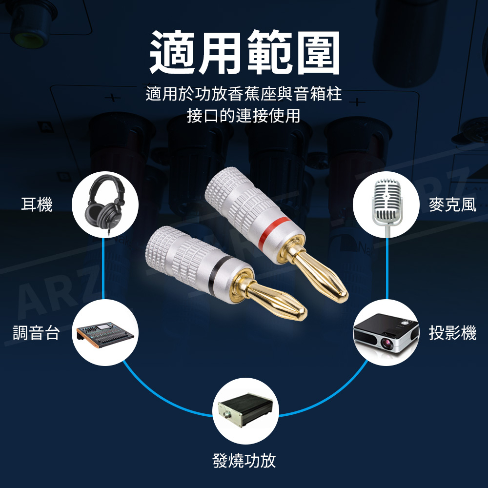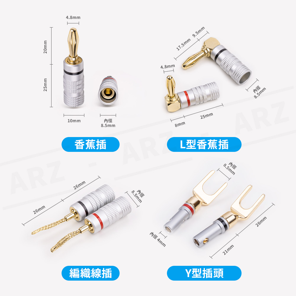 喇叭線專用接頭 純銅鍍金 送一字起【ARZ 實拍現貨】【D150】香蕉插 音響線 喇叭線接頭 香蕉頭 喇叭端子 香蕉接頭編織線插,紅色|編織線插,黑色|標準香蕉插,紅色|標準香蕉插,黑色|L型香蕉插,紅色|L型香蕉插,黑色|Y型插,紅色|Y型插,黑色ARZ行動商城