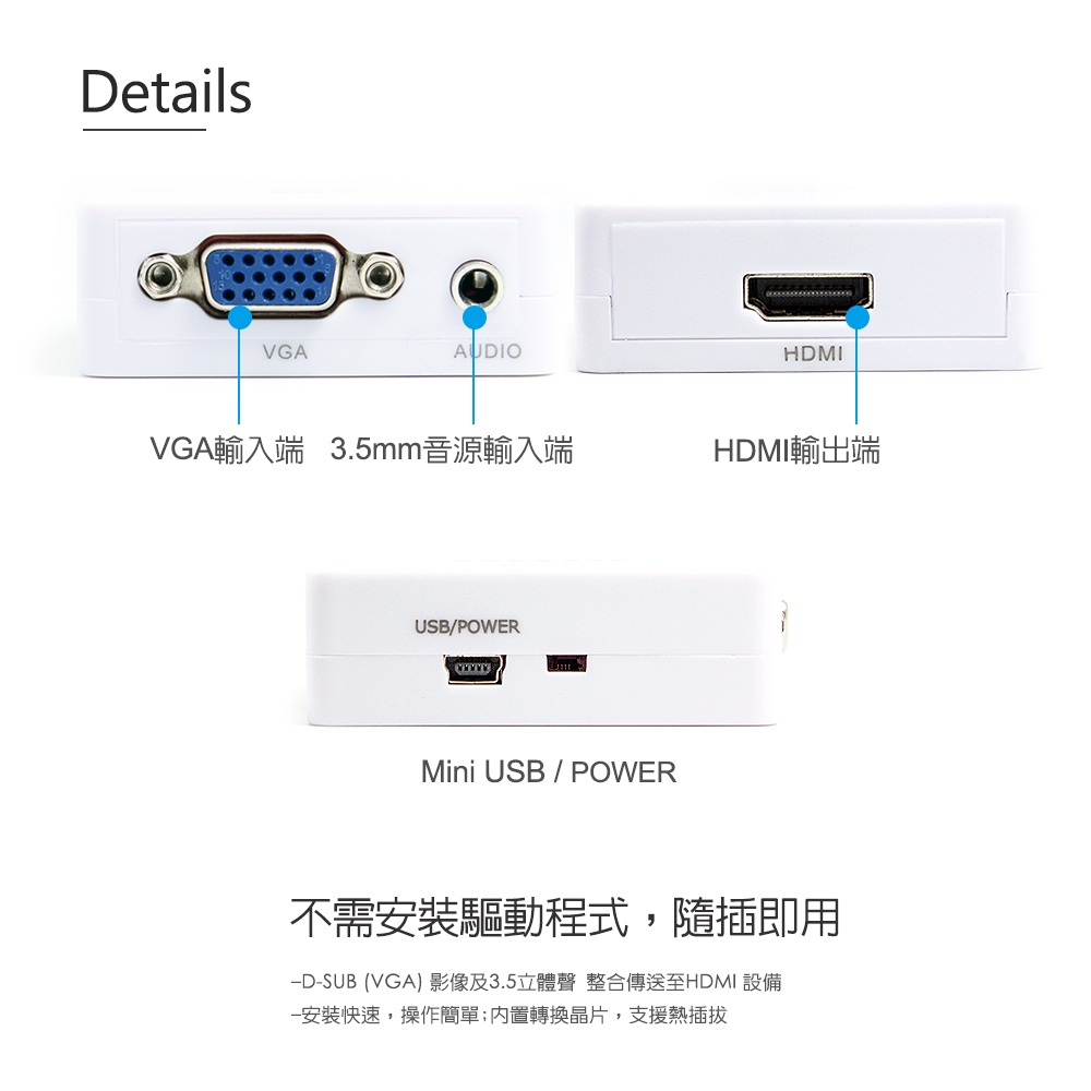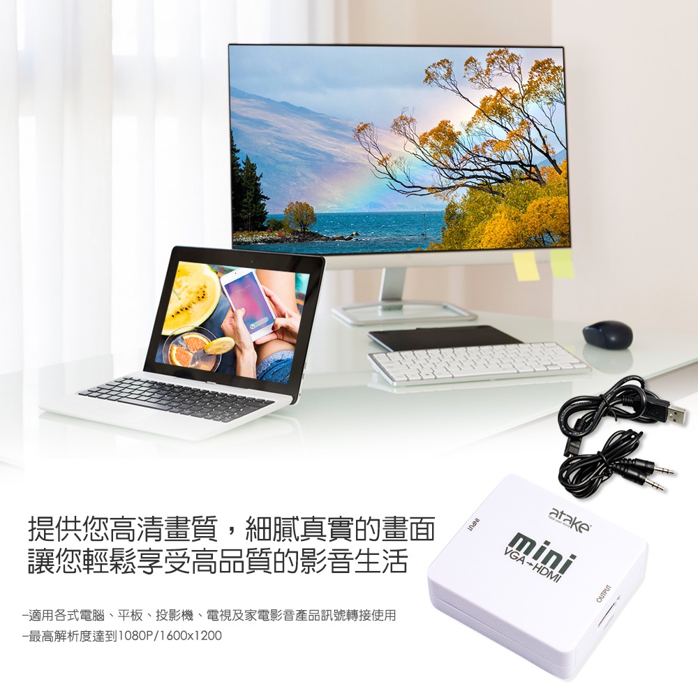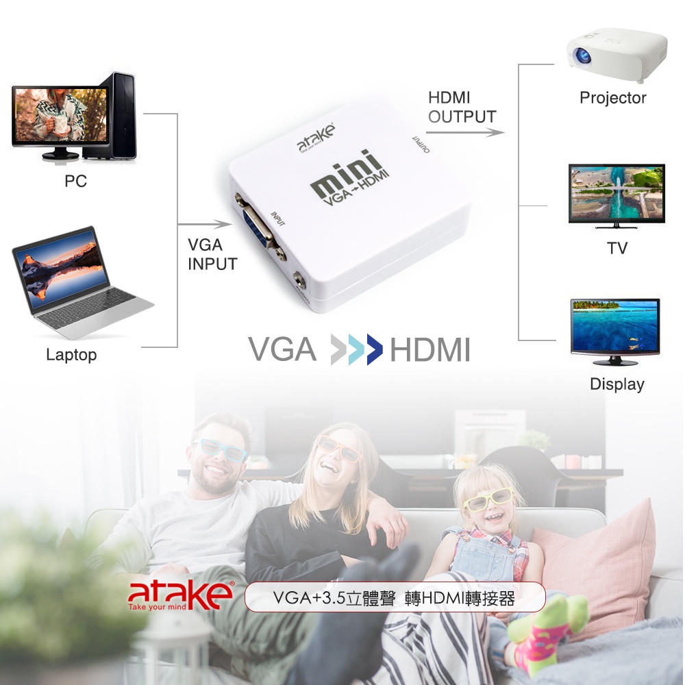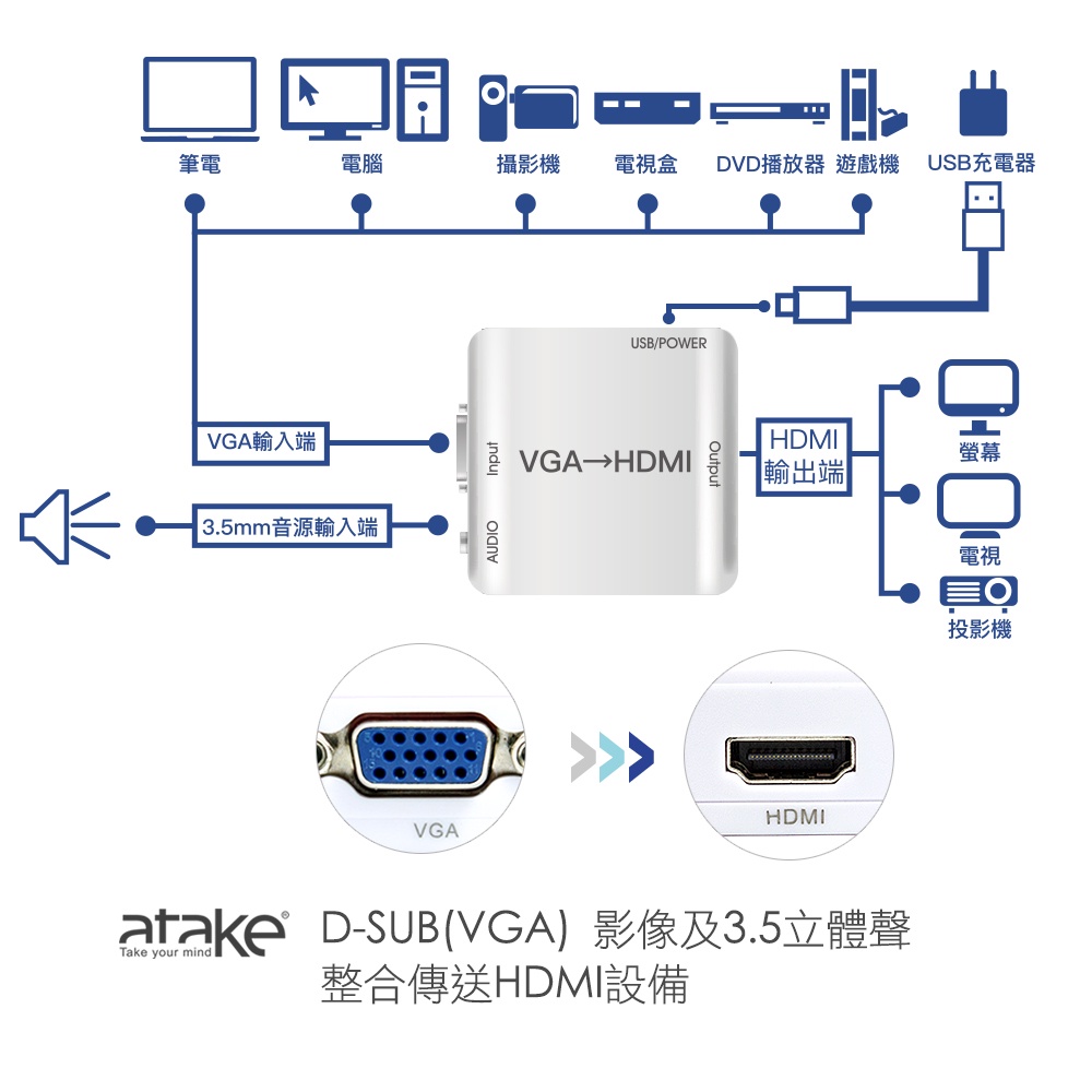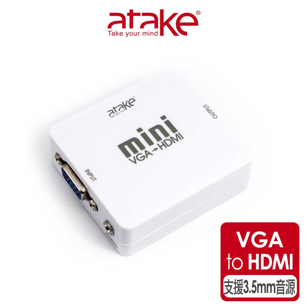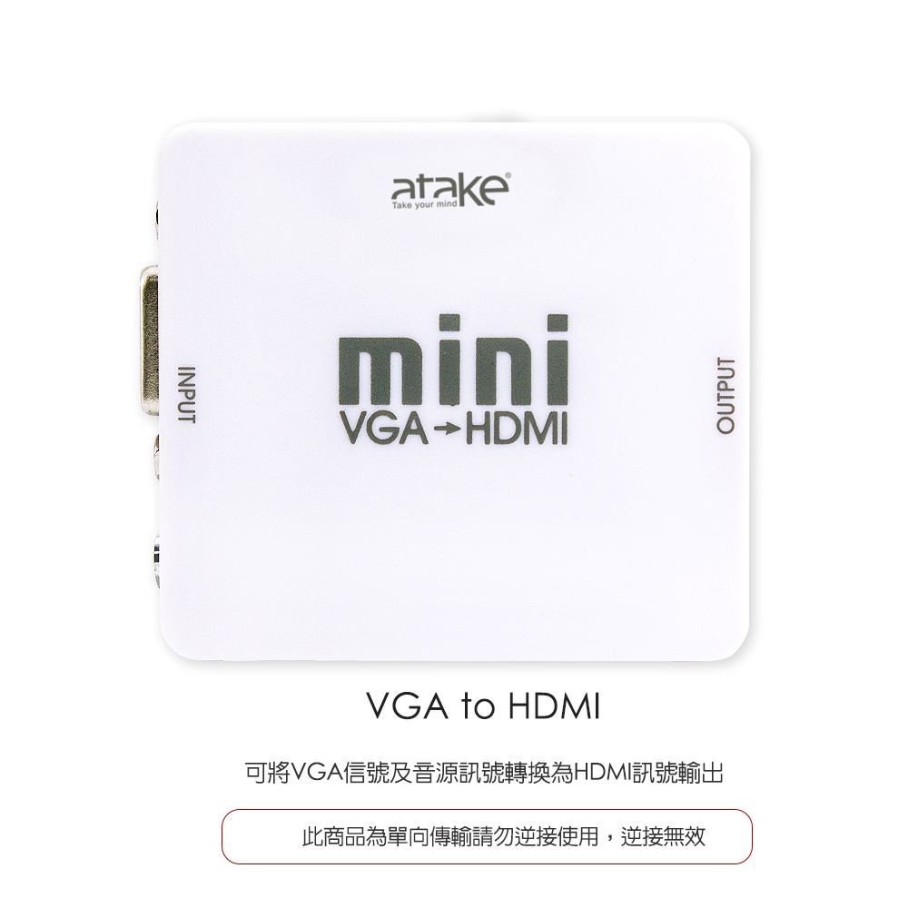 【atake】VGA轉HDMI轉接器 支援HDCP/母對母/支援1080P高畫質/帶3.5mm立體聲音源孔【atake】VGA轉HDMI轉接器 支援HDCP/母對母/支援1080P高畫質/帶3.5mm立體聲音源孔atake台灣官方旗艦店