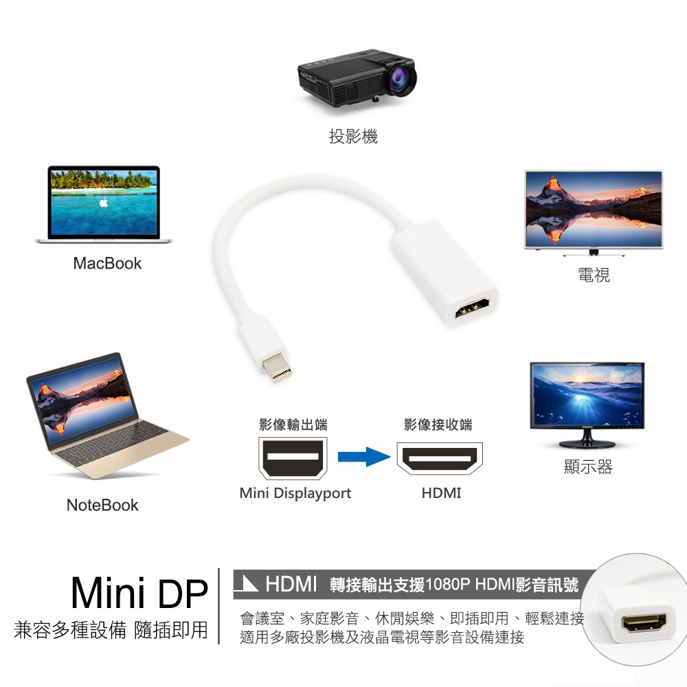 【atake】MiniDP轉HDMI高畫質影音轉接線/(支援Full/HD)【atake】MiniDP轉HDMI高畫質影音轉接線/(支援Full/HD)atake台灣官方旗艦店
