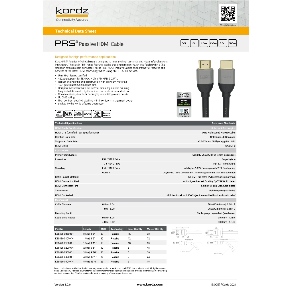 【Kordz】PRS4 Passive HDMI Cables 8K 影音傳輸線0.5m|1m|1.5m|2m|3m|4m|5mAvier 官方旗艦店