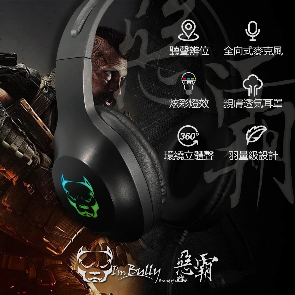 【I’m Bully 惡霸】F5 RGB電競耳機麥克風 電競耳機/遊戲耳機/耳罩式耳麥/RGB耳麥【I’m Bully 惡霸】F5 RGB電競耳機麥克風 電競耳機/遊戲耳機/耳罩式耳麥/RGB耳麥atake台灣官方旗艦店
