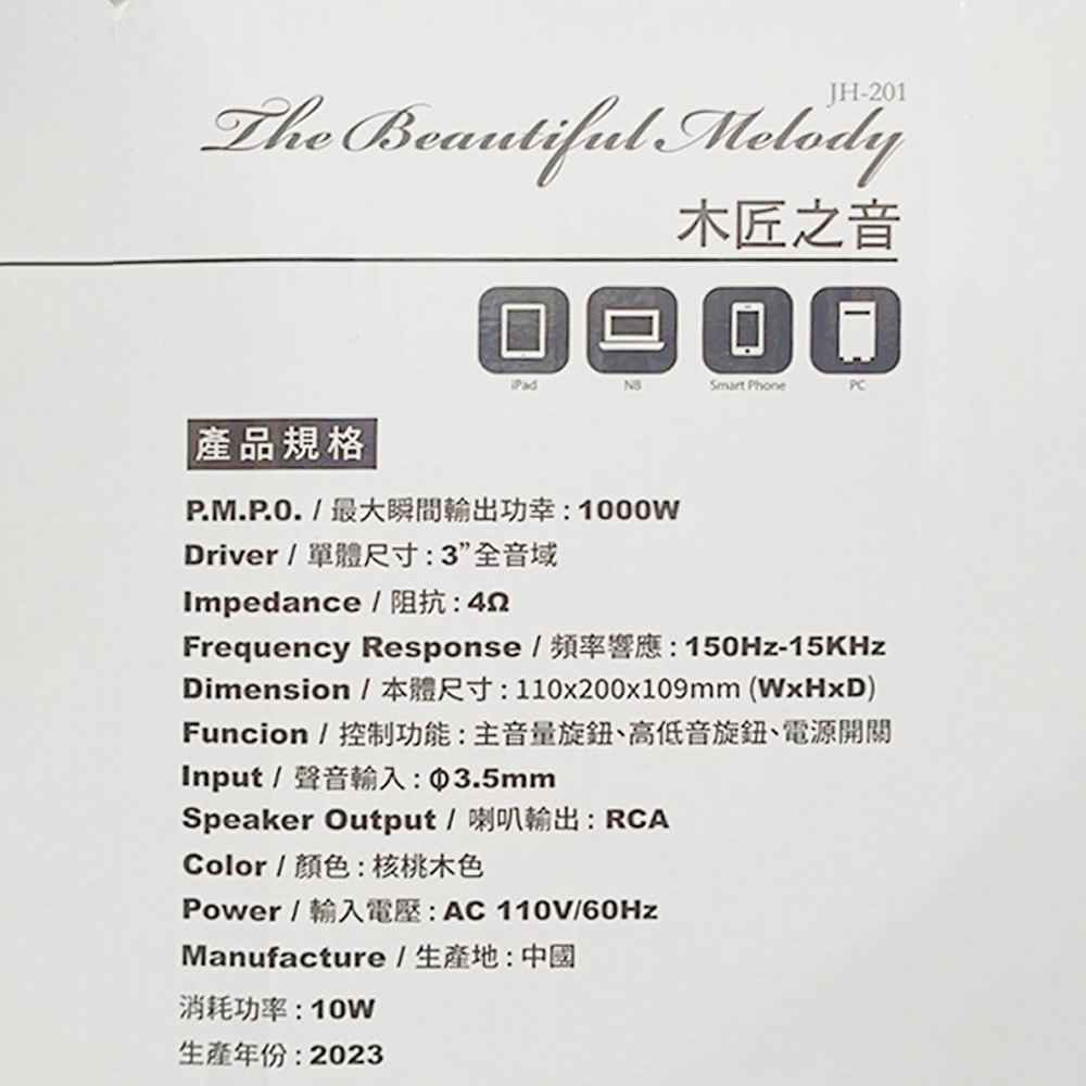 【現貨】木匠之音 2.0聲道 二件式多媒體喇叭 JH-201 有線喇叭 電腦喇叭 有線音箱【現貨】木匠之音 2.0聲道 二件式多媒體喇叭 JH-201 有線喇叭 電腦喇叭 有線音箱SpeakersBK.3C 露營旗艦店