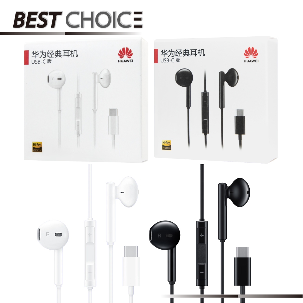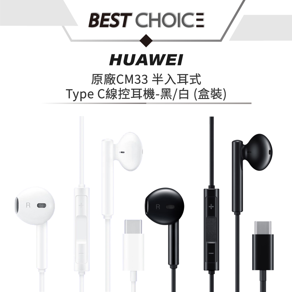 HUAWEI華為 原廠 Type-C 半入耳式線控經典耳機【盒裝】CM33盒裝-黑色|盒裝-白色Best Choice旗艦店