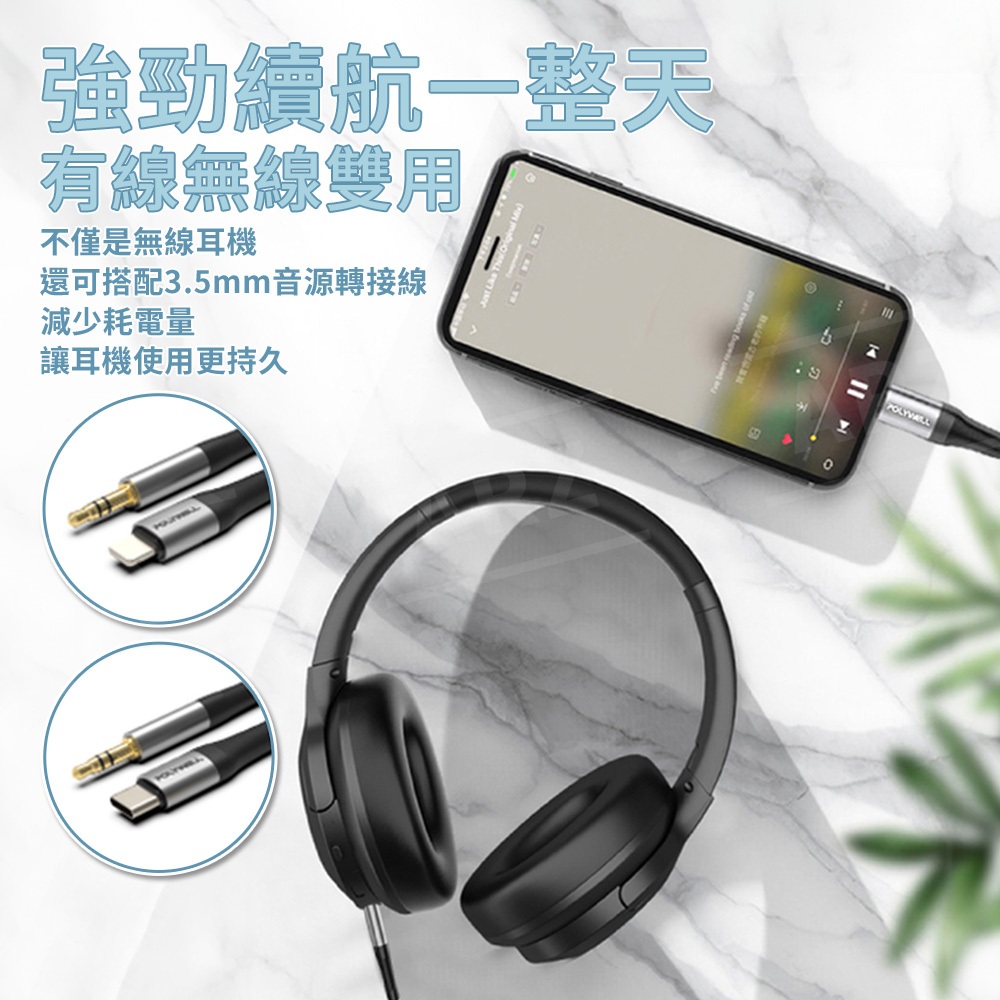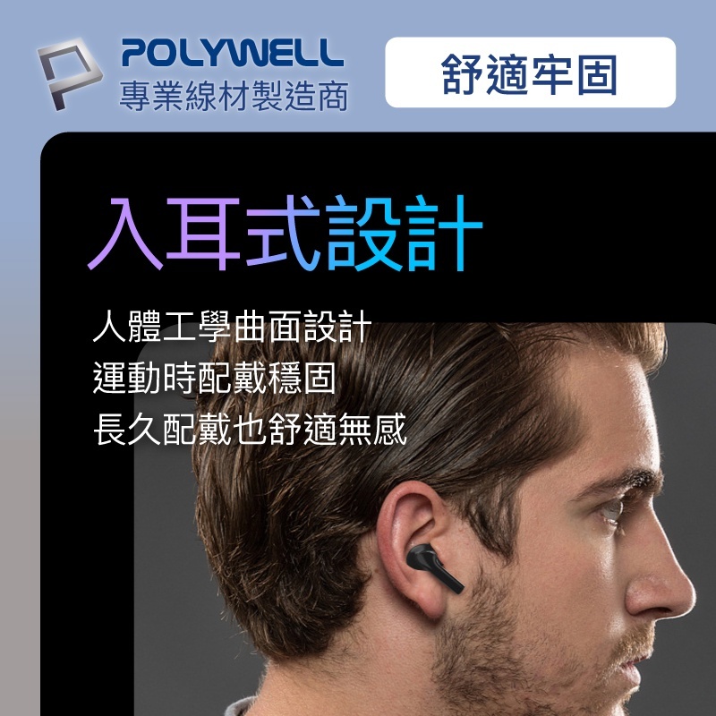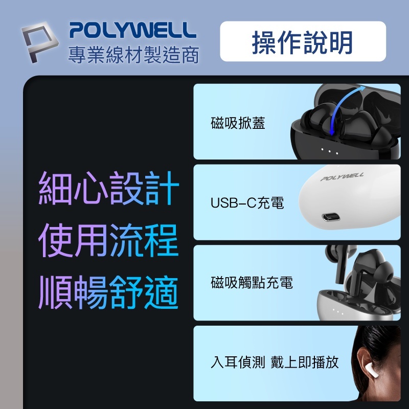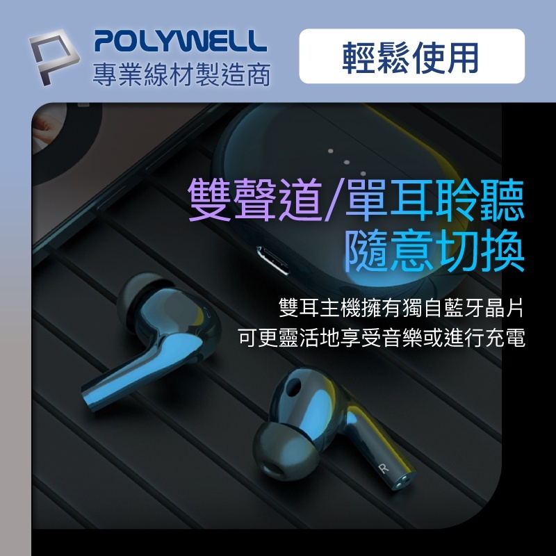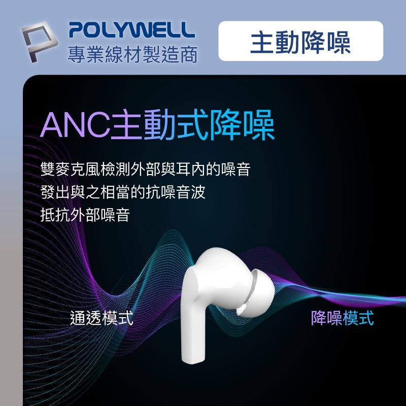 POLYWELL 寶利威爾 藍芽耳機 耳機 無線藍牙主動式降噪耳機 高質感音效 耳機觸控式操作 USB-C充電倉設計