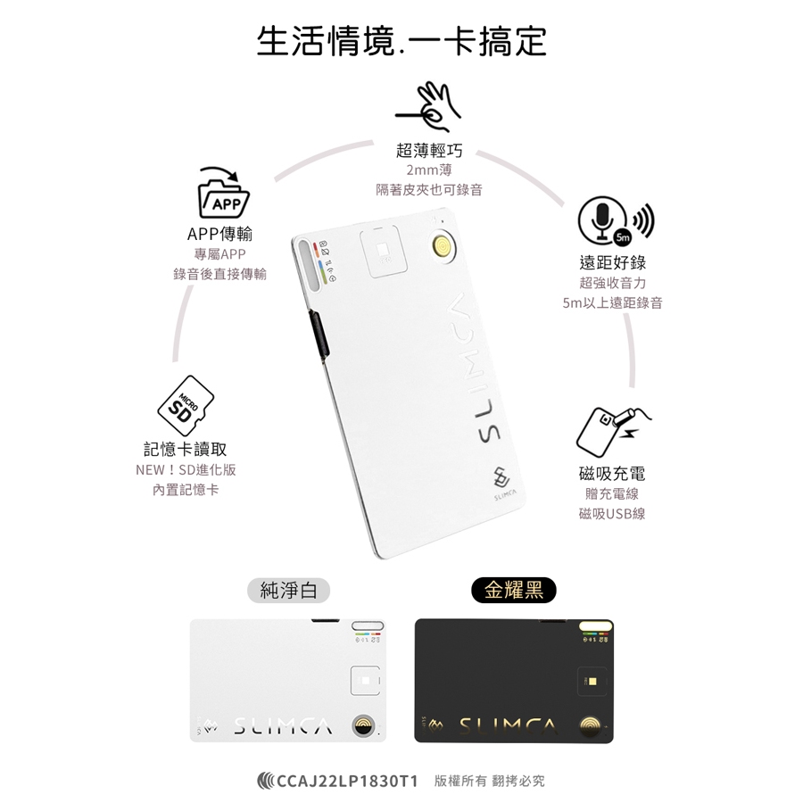 Slimca SD進化版 超薄錄音卡 MIT台灣製【原廠一年保固!公司貨】錄音筆 記錄 錄音 錄音卡 會議記錄 密錄器金耀黑|純淨白Voice Recordersaibo 3C生活館