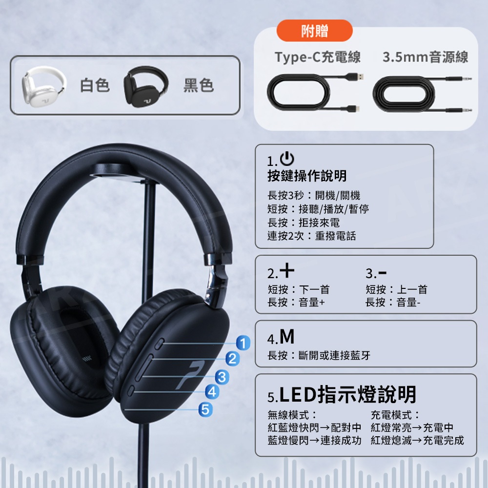 POLYWELL 耳罩式耳機 藍牙耳機【ARZ】【G132】無線耳機 電腦耳機 頭戴式耳機 全罩耳機 電競耳機 藍芽耳機TM-087/黑色(新款)|TM-087/白色(新款)|TM-086/天藍|TM-086/純黑|TM-086/卡其ARZ行動商城