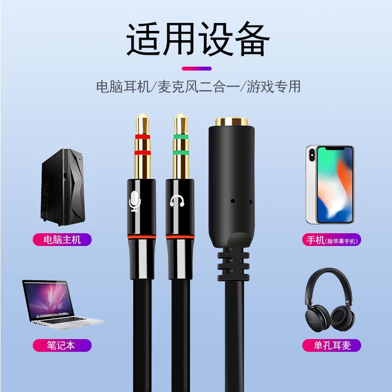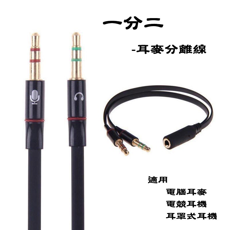 一對二耳麥分離線 3.5mm音源轉接線 耳機線 分接線 一分二耳麥分接線 轉接頭 適用電腦耳麥 電競耳機 耳罩式耳機耳麥分離線,白色|耳麥分離線,隨機色ADHIL旗艦店