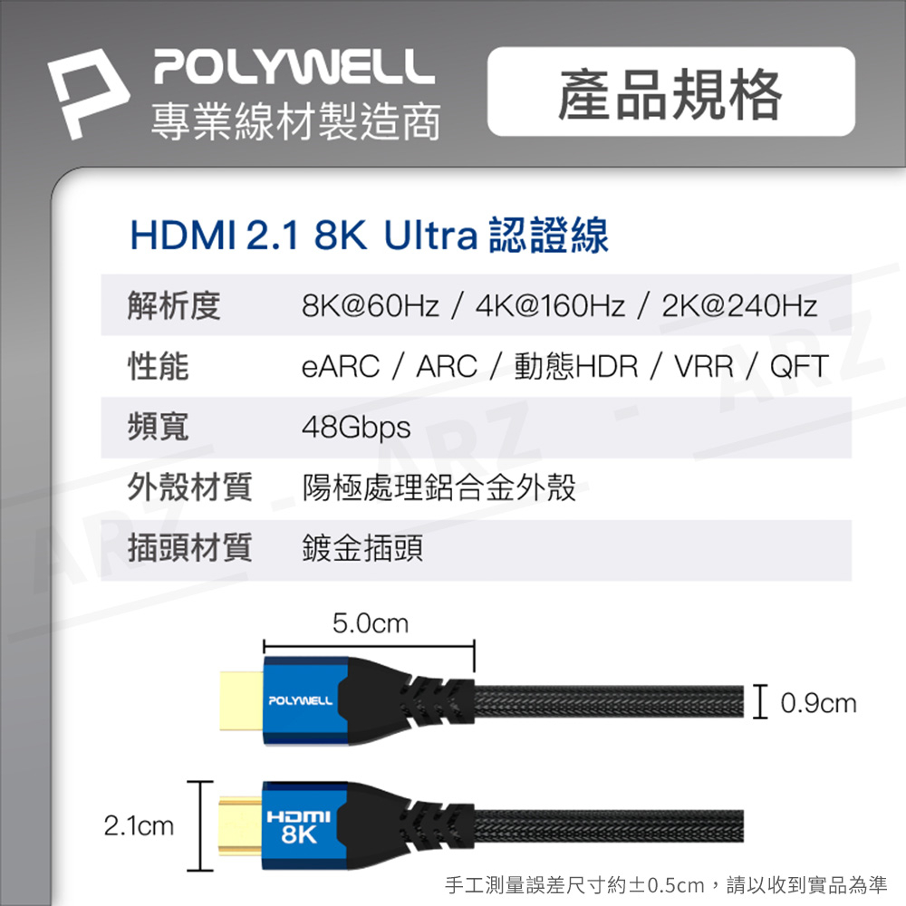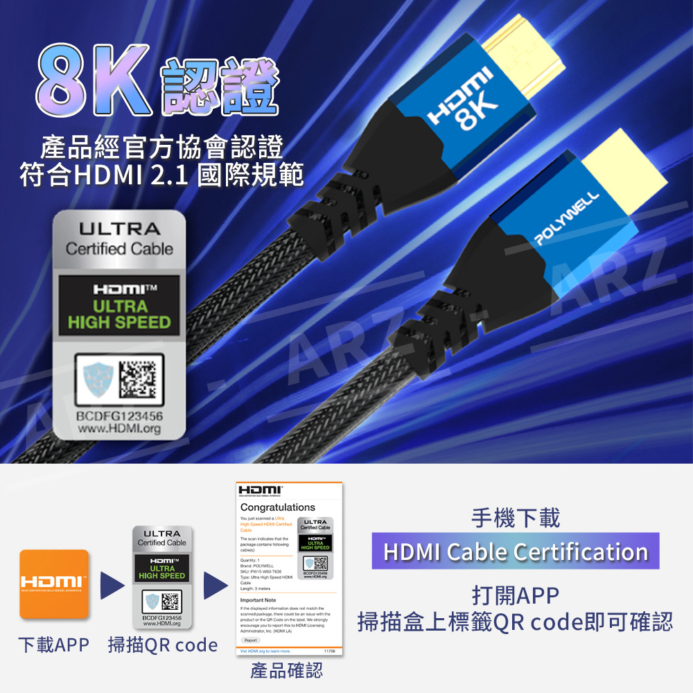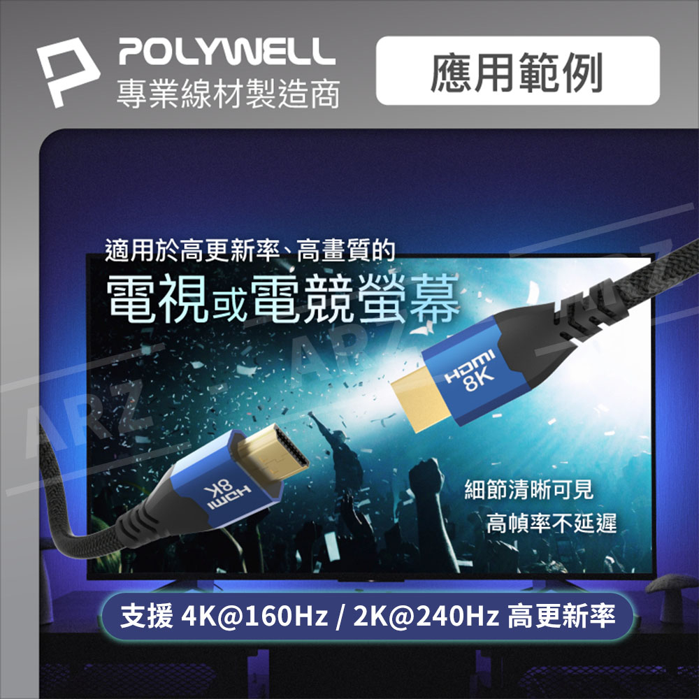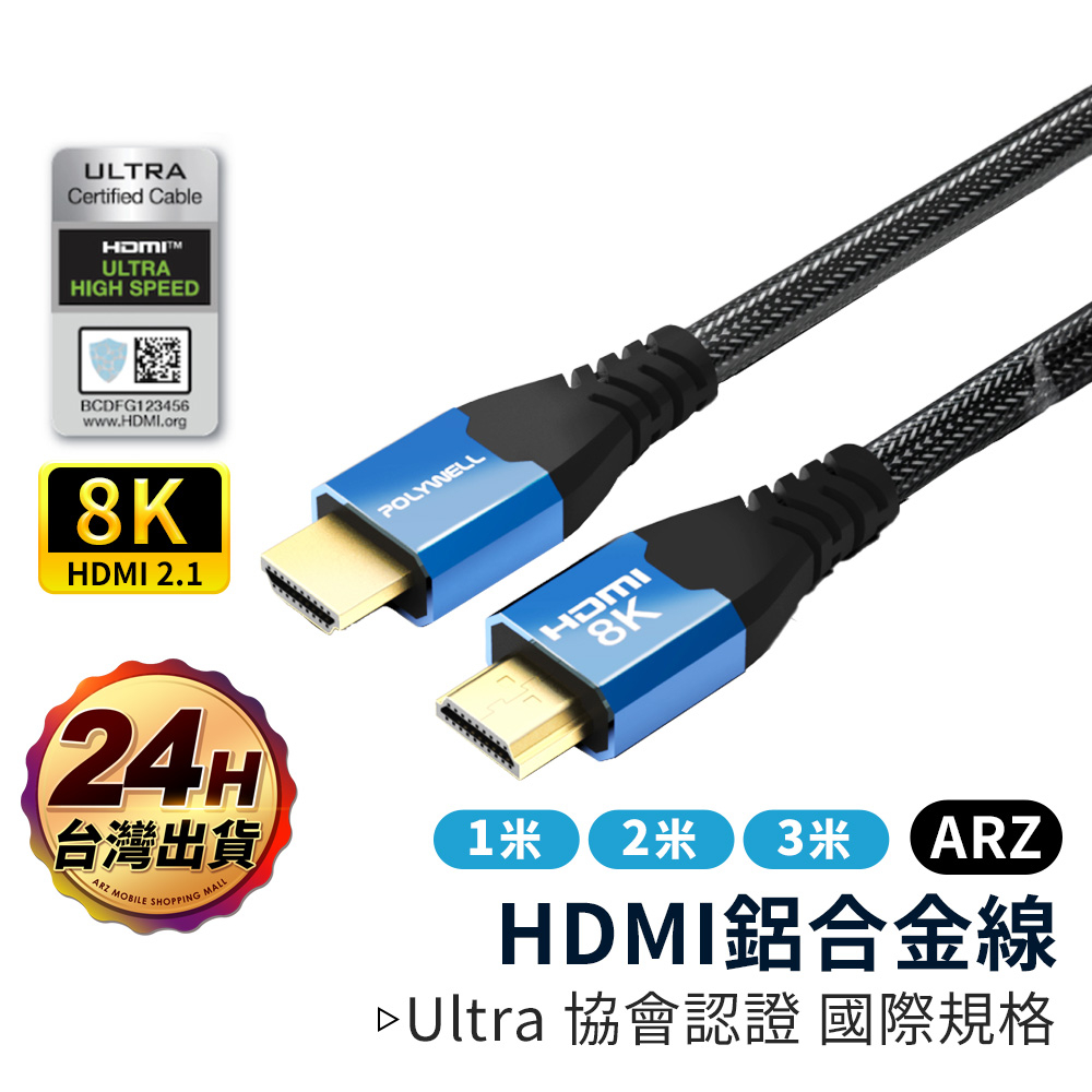HDMI 2.1 8K 協會認證線 1~3米【ARZ】【E126】Polywell 160Hz 影音傳輸線 HDMI線1m|2m|3mARZ行動商城