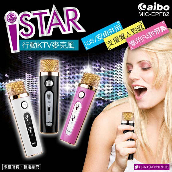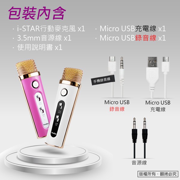 aibo I-STAR 行動KTV 麥克風 FM對頻麥克風 USB充電 車用麥克風 (支援FM對頻) 粉紅 【現貨】粉紅aibo 3C生活館