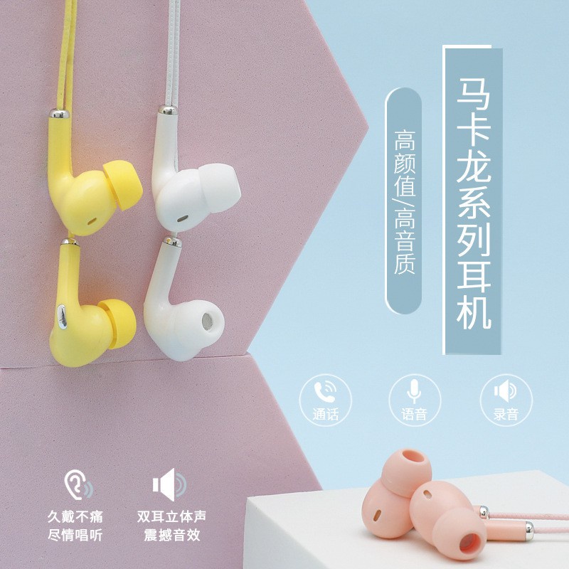 三代馬卡龍線控耳機 適用iPhone/安卓/電腦 吃雞 麥克風 入耳不掉 耳機 立體聲 重低音 HIFI 可通話櫻花粉|活力黃|學院藍|抹茶綠|珍珠白|雅典黑ADHIL旗艦店