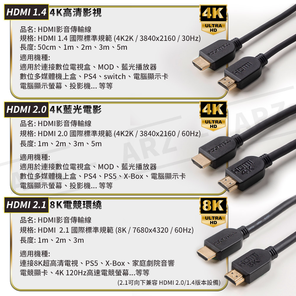 HDMI 2.1/2.0 影音傳輸線 UHD 4K線 0.5米~5米【ARZ 實拍現貨】【E007】純銅鍍金8K線 HD1.4版/4K_高清影視,50cm|1.4版/4K_高清影視,2m|1.4版/4K_高清影視,3m|2.0版/4K_藍光電影,5m|2.1版/8K_環繞電競,3m|1.4版/4K_高清影視,5m|2.0版/4K_藍光電影,2m|2.0版/4K_藍光電影,3m|1.4版/4K_高清影視,1m|2.0版/4K_藍光電影,1m|2.1版/8K_環繞電競,50cm|2.1版/8K_環繞電競,2m|2.1版/8K_環繞電競,5m|2.0版/4K_藍光電影,50cm|2.1版/8K_環繞電競,1mARZ行動商城