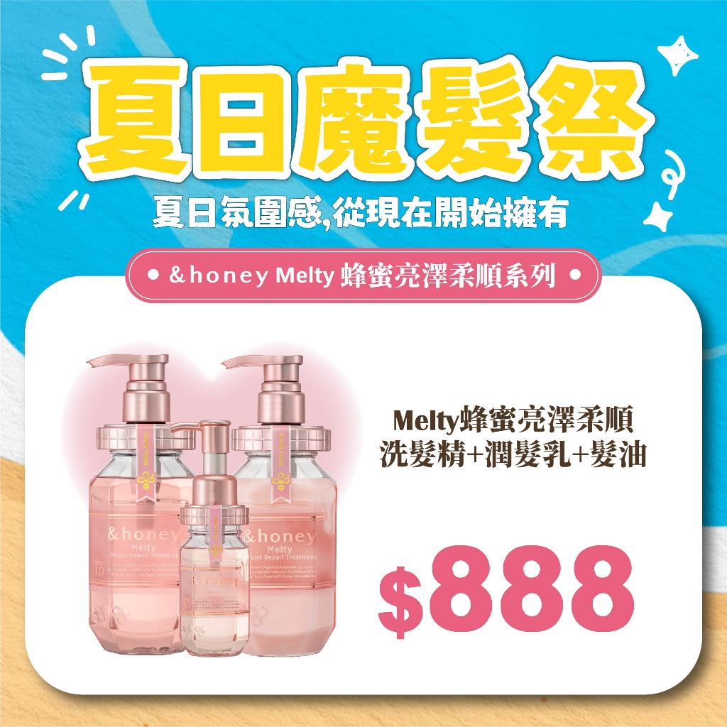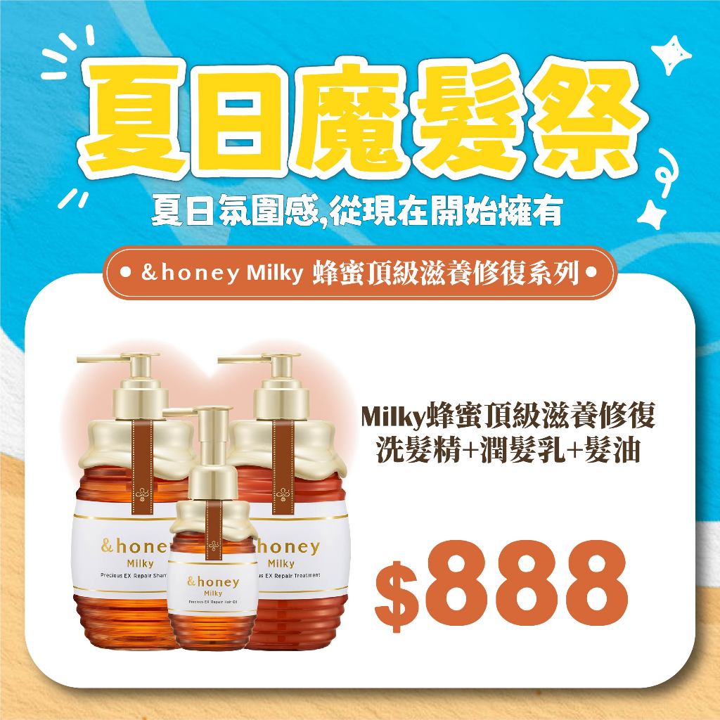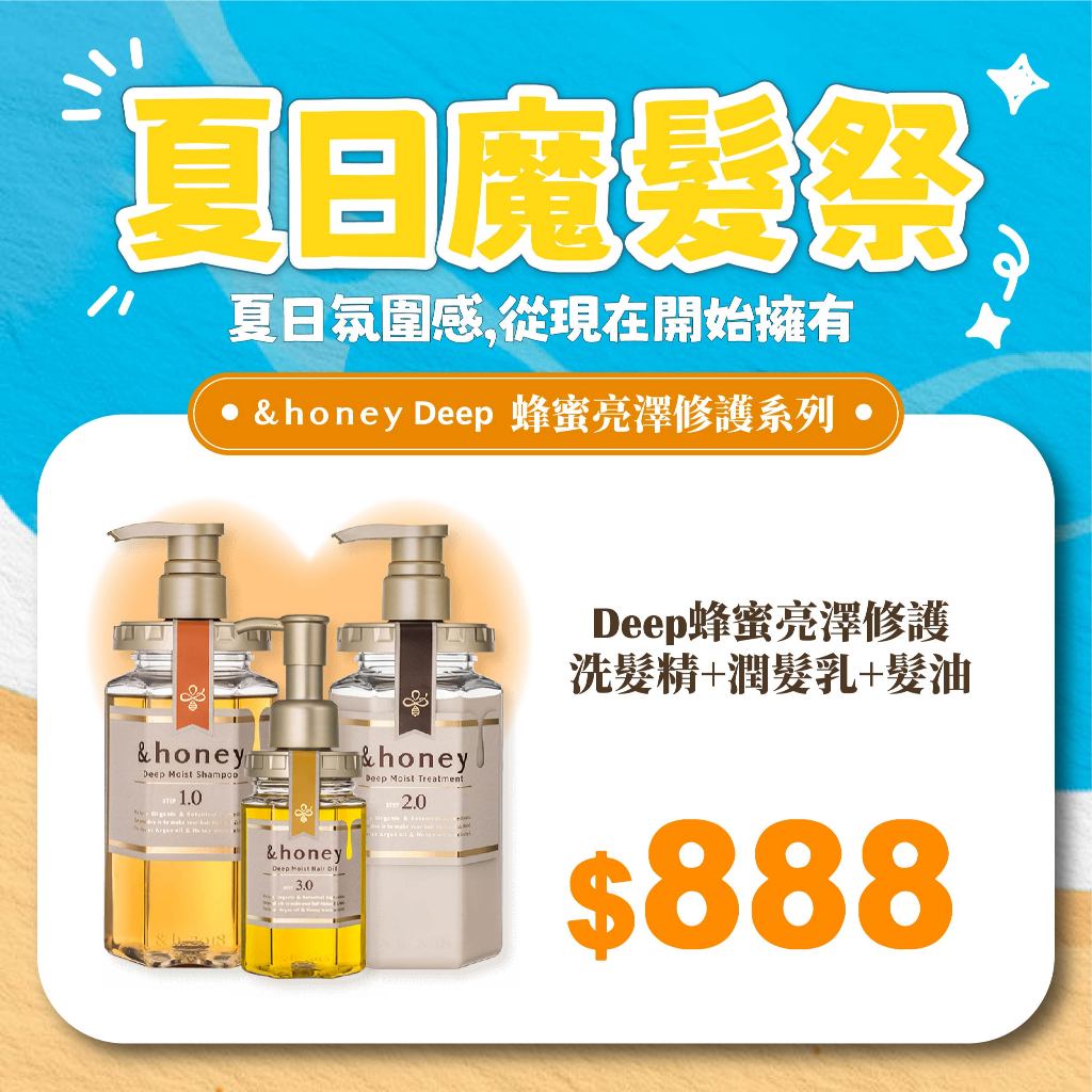 夏日魔髮祭|&honey 超值優惠組合|洗髮精/潤髮乳/髮油/髮膜