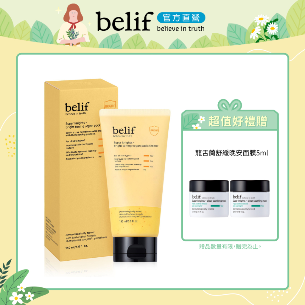 belif 【潔淨透亮】超能騎士維他命透亮清潔面膜 150ml|官方旗艦店【8月限定加贈】|【150ml】|【9月限量加贈】Face Mask & Packsbelif 官方旗艦店