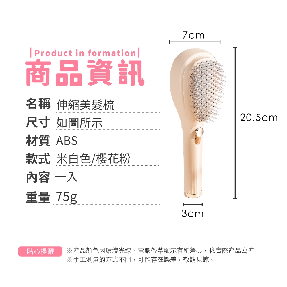 伸縮美髮梳 梳子 推拉美髮梳 頭髮梳 美髮梳 魔法梳 按摩梳 伸縮梳 不打結梳 伸縮梳子【小麥購物】【G741】粉色|米色Hair Tools 小麥購物