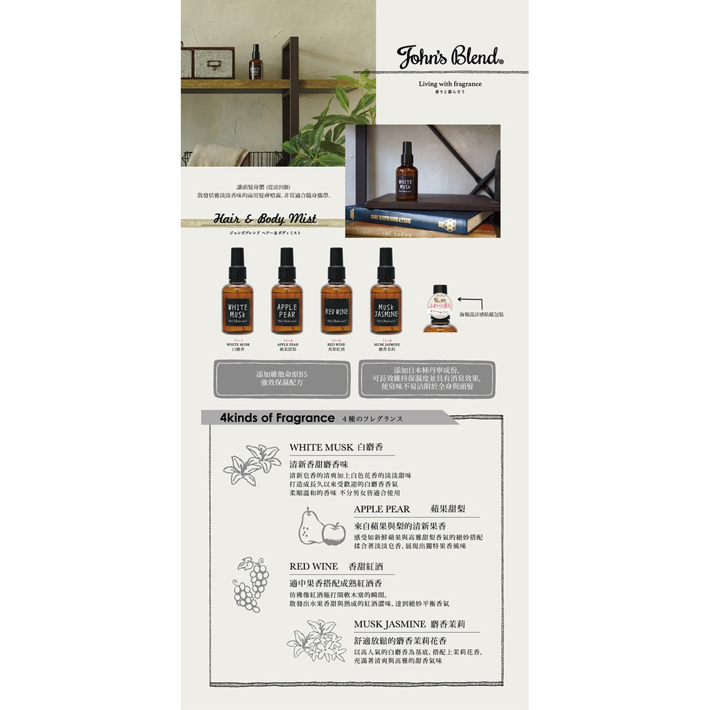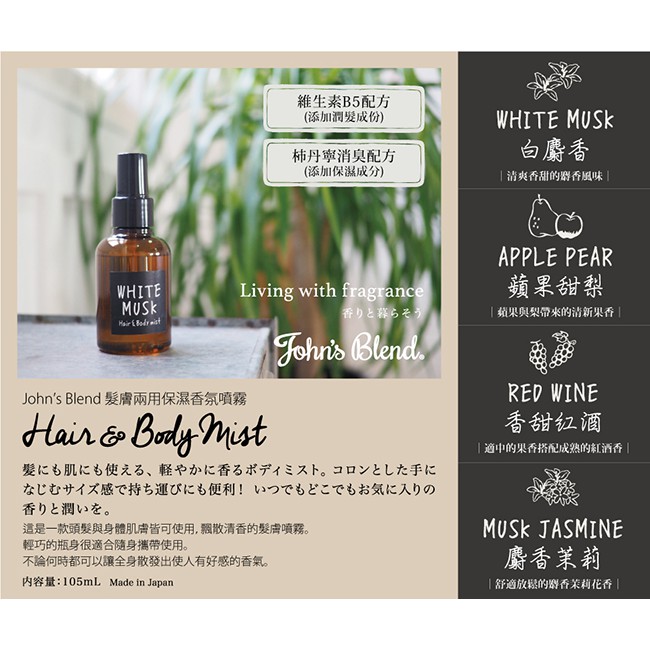 John’s Blend 髮膚兩用保濕香氛噴霧-香甜紅酒/麝香櫻花/金木樨/橙麝香/小熊維尼/魔髮奇緣/青檸羅勒/亞麻香甜紅酒|金木樨2024|小熊維尼|魔髮奇緣|橙麝香|青檸羅勒|亞麻麝香(95ml)|麝香櫻花(95ml)Facial MistB&H 多立康保健食品、日本John’s Blend香氛、日用雜貨專賣店