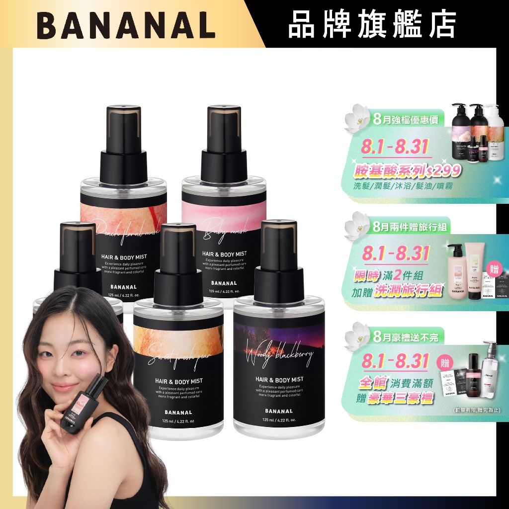 台灣快速出貨【BANANAL】頭髮身體香氛噴霧125ml | 官方旗艦店木質黑莓|嬰兒麝香|蜜桃杉木|花樣白麝香|香梨小蒼蘭Body DeodorantsBananal 韓國品牌旗艦店