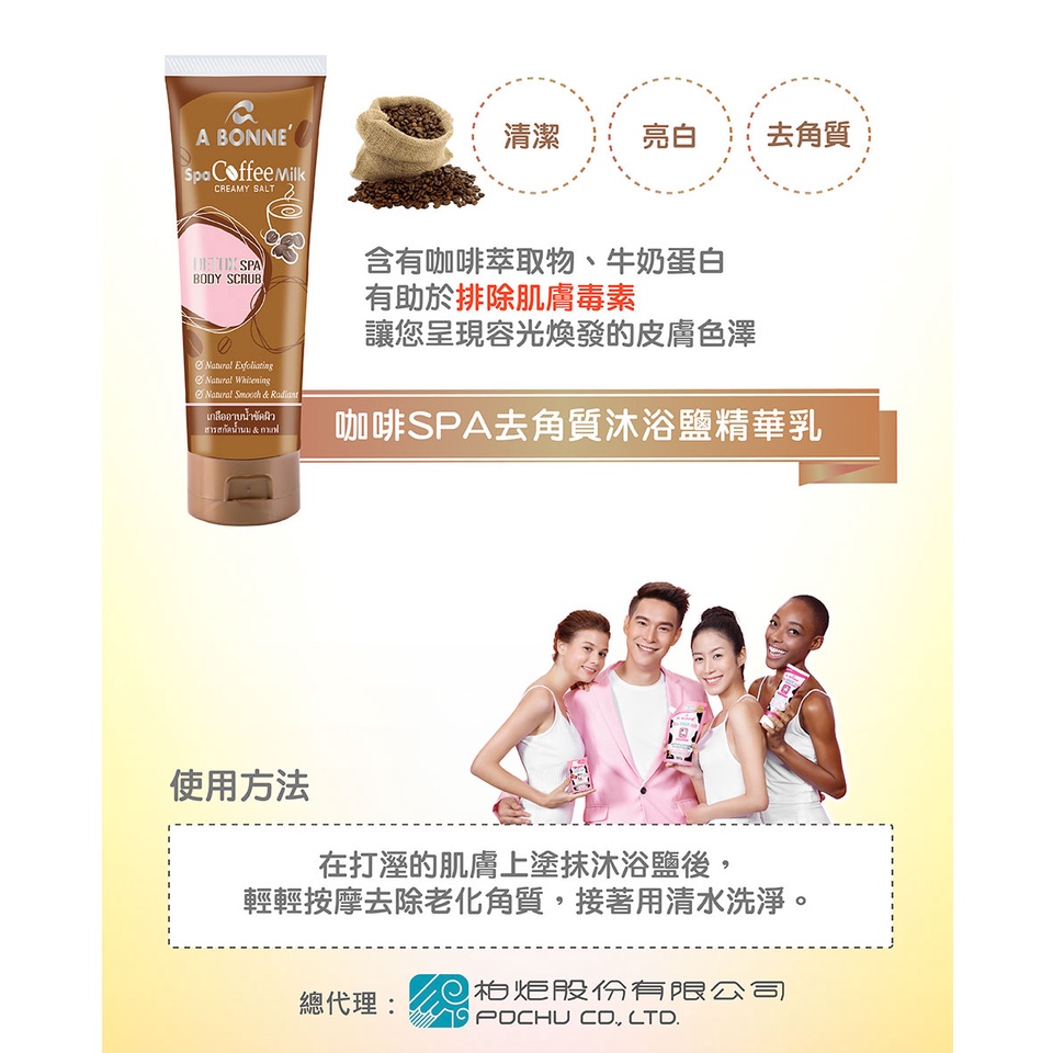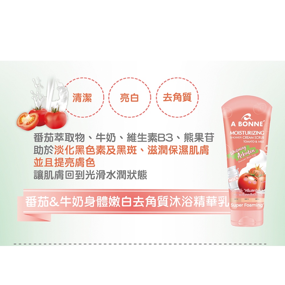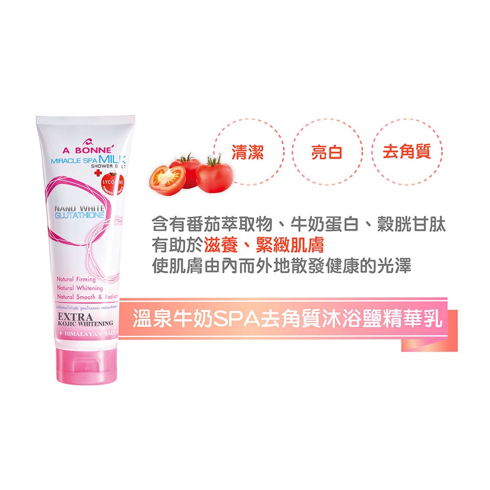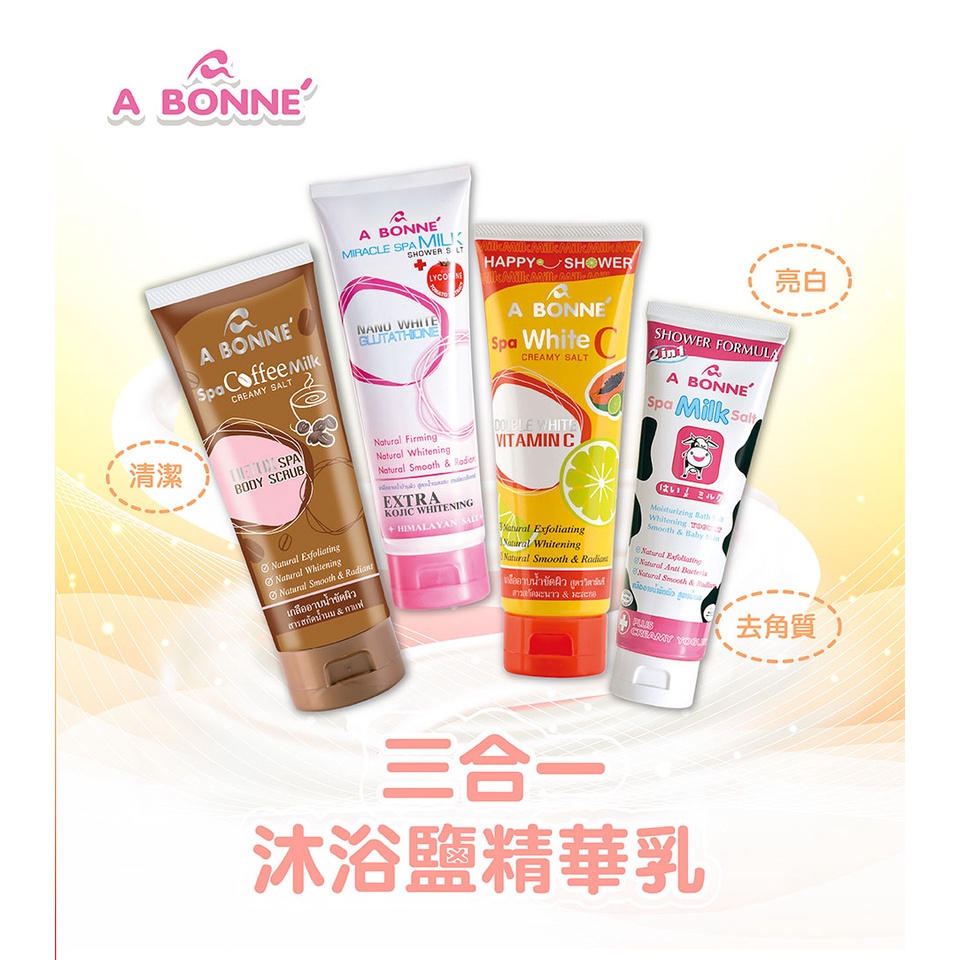 A BONNE’ 去角質沐浴鹽精華乳(牛奶/溫泉牛奶/維他命C亮白/咖啡/蘆薈&羅望子/番茄&牛奶) 泰妝 Abonne咖啡SPA去角質|蘆薈&羅望子淨白身體去角質|牛奶SPA身體去角質|溫泉牛奶SPA身體去角質|即期-維他命C亮白SPA身體去角質|即期-番茄&牛奶嫩白身體去角質Body Scrub & PeelBeauty box 美麗百寶箱