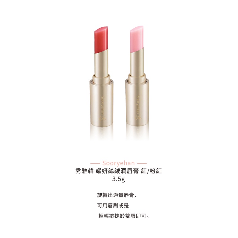 【買一送一】Sooryehan 秀雅韓 耀妍絲絨潤唇膏 紅/粉紅 3.5g《BEAULY倍莉》唇膏 口紅 韓國 LG紅色 (買一送一)|粉色 (買一送一)Lip TreatmentBEAULY倍莉|精品香水美妝