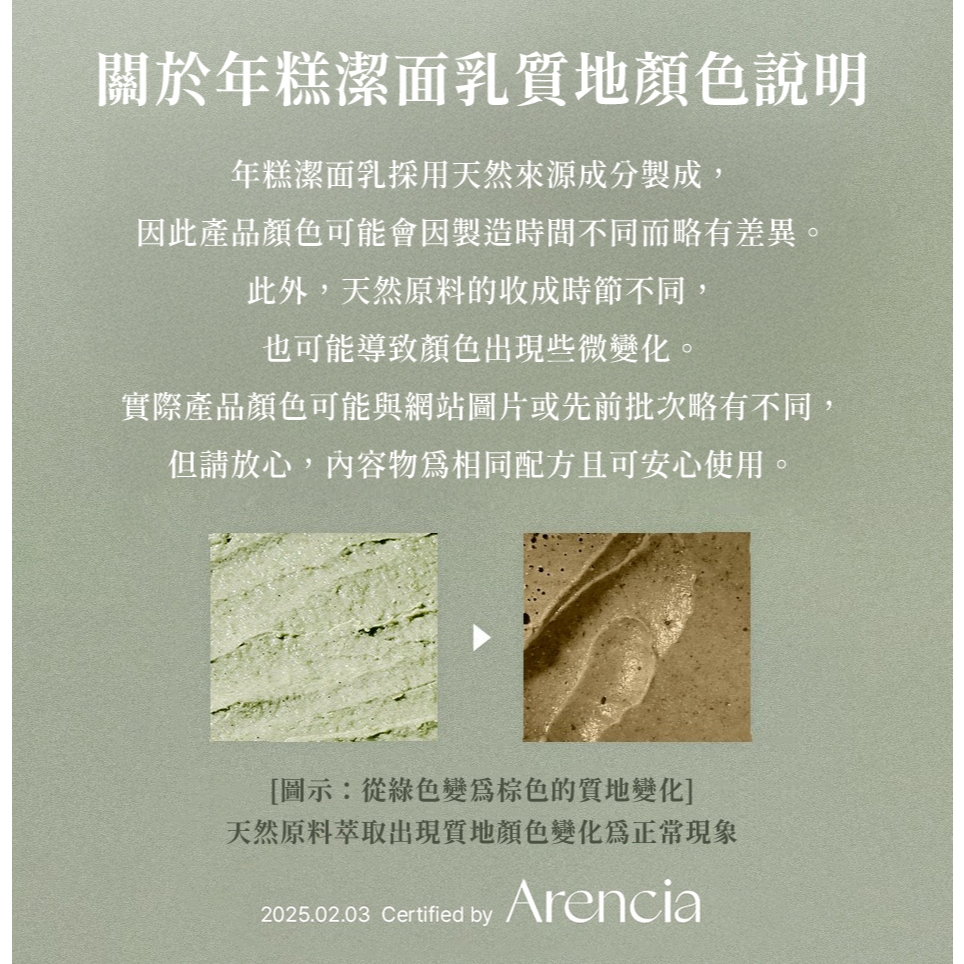Arencia 綠意匠心年糕潔面乳 120g 官方旗艦店120gFacial CleanserArencia 官方旗艦店