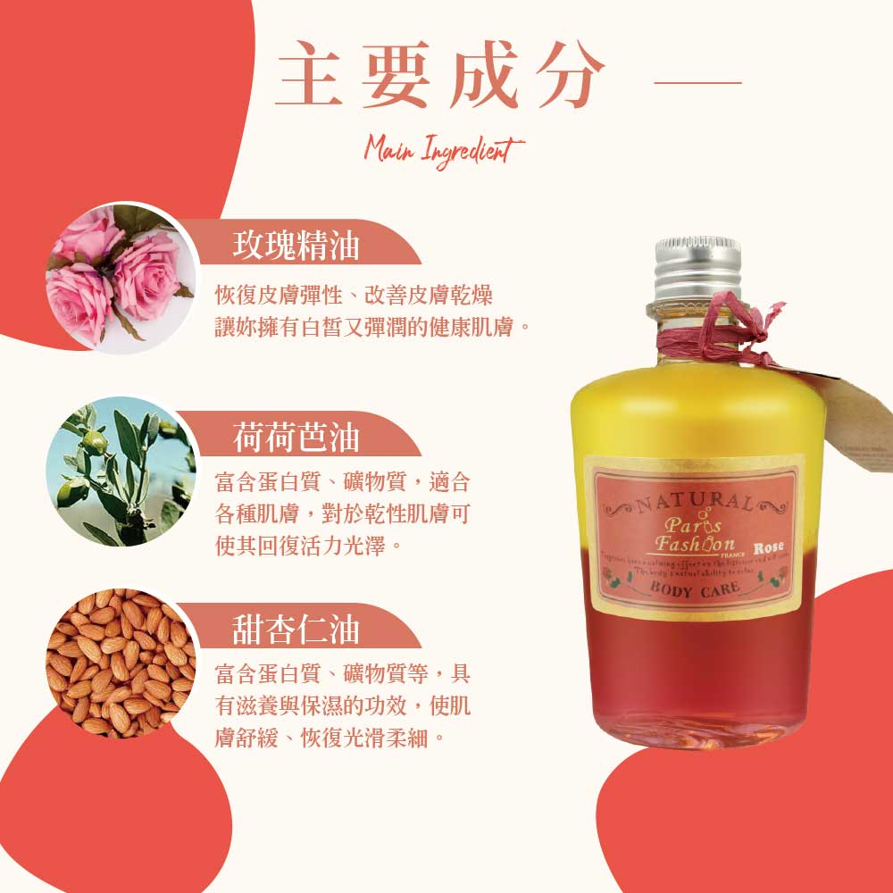 【巴黎香氛】雙嬌律動按摩油-玫瑰Rose (250ml/500ml)按摩 滋潤 舒緩 SPA 保濕 精油 按摩精油 專櫃250ml|500mlMassage Oil《ParisFragrance巴黎香氛》官方旗艦館