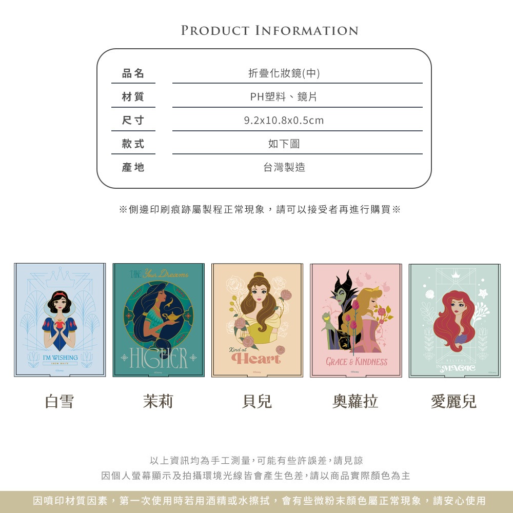 迪士尼公主系列 台灣製摺疊鏡 | 鏡子 隨身鏡 化妝鏡子 愛麗兒,貝兒,白雪公主,茉莉公主,奧蘿拉【5i白雪|茉莉|貝兒|奧蘿拉|愛麗兒Makeup Accessories5IP8居家生活館