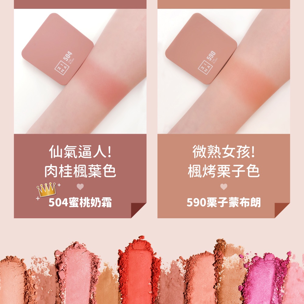【3INA】甜心濾鏡腮紅 8色任選 7.5g 純素|官方直營212奶油蜜橘|232柿子果醬|362玫瑰舒芙蕾|369莓果西柚塔|504蜜桃奶霜|590栗子蒙布朗|591咖啡布蕾|503焦糖茶玫瑰Face3INA Taiwan