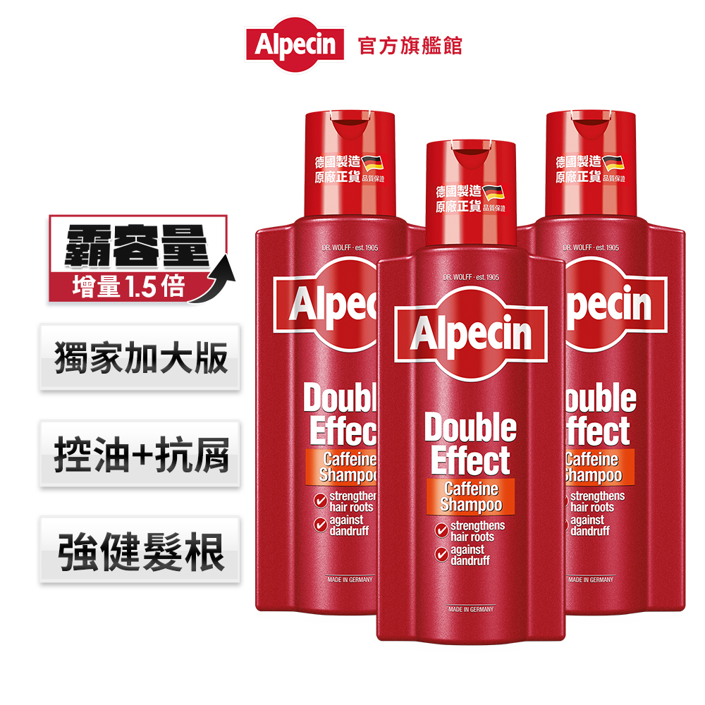 【Alpecin】霸容量大紅瓶-雙效咖啡因抗頭皮屑洗髮露375ml 二入/三入組 -增量1.5倍油頭必備三入組|二入組ShampooAlpecin/Plantur/Bioniq貝歐尼-Dr. Wolff官方商城