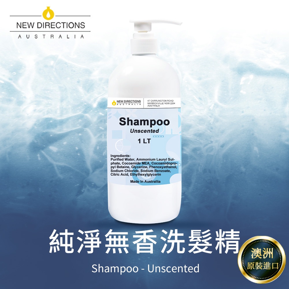【澳洲 ND】洗髮精/洗髮乳1公升(純淨無香) -可自行添加精油 澳洲原裝進口 新方向