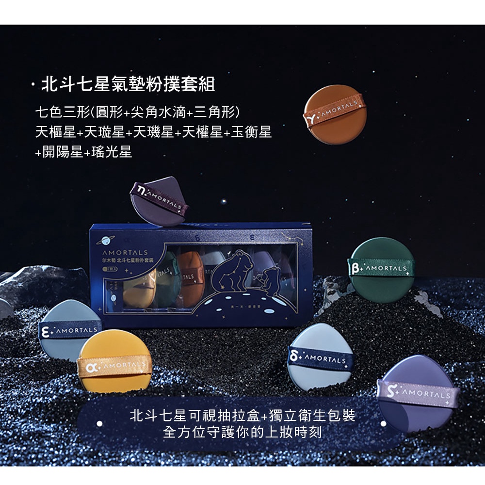 【AMORTALS爾木萄品牌 台灣代理供貨】 北斗七星氣墊粉撲 7入套組