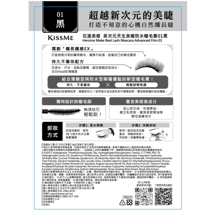 KISSME 花漾美姬 次元天生美睫防水睫毛膏 01黑 / 02深棕 6g01黑|02深棕EyesAZN 日韓旗艦館