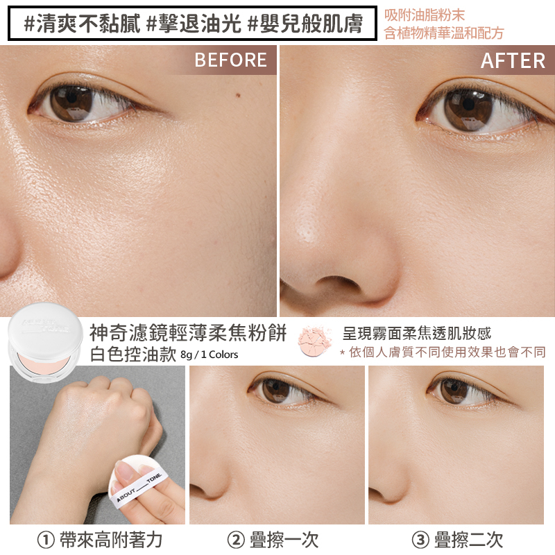 【ABOUT_TONE】新品 神奇濾鏡輕薄柔焦蜜粉餅 5色 粉餅 控油 清爽 光澤 遮瑕 The Blur純素柔焦定妝蜜黑色遮瑕款 #01FAIR17白皙|黑色遮瑕款 #02LIGHT21明亮|黑色遮瑕 #03NATURAL23自然|粉色光澤款 極強的珠光提亮粉餅|藍色清透款 敏感肌可用 清爽不沾罩|白色控油款 柔焦零毛孔蜜粉餅|The Blur純素柔焦定妝蜜粉FaceBBIA & EGLIPS 台灣官方旗艦店(台灣唯一總代理)