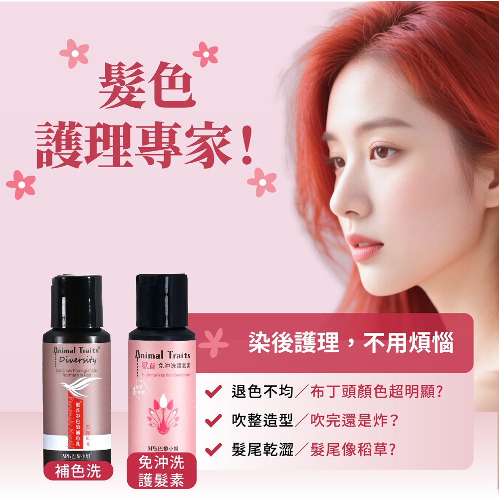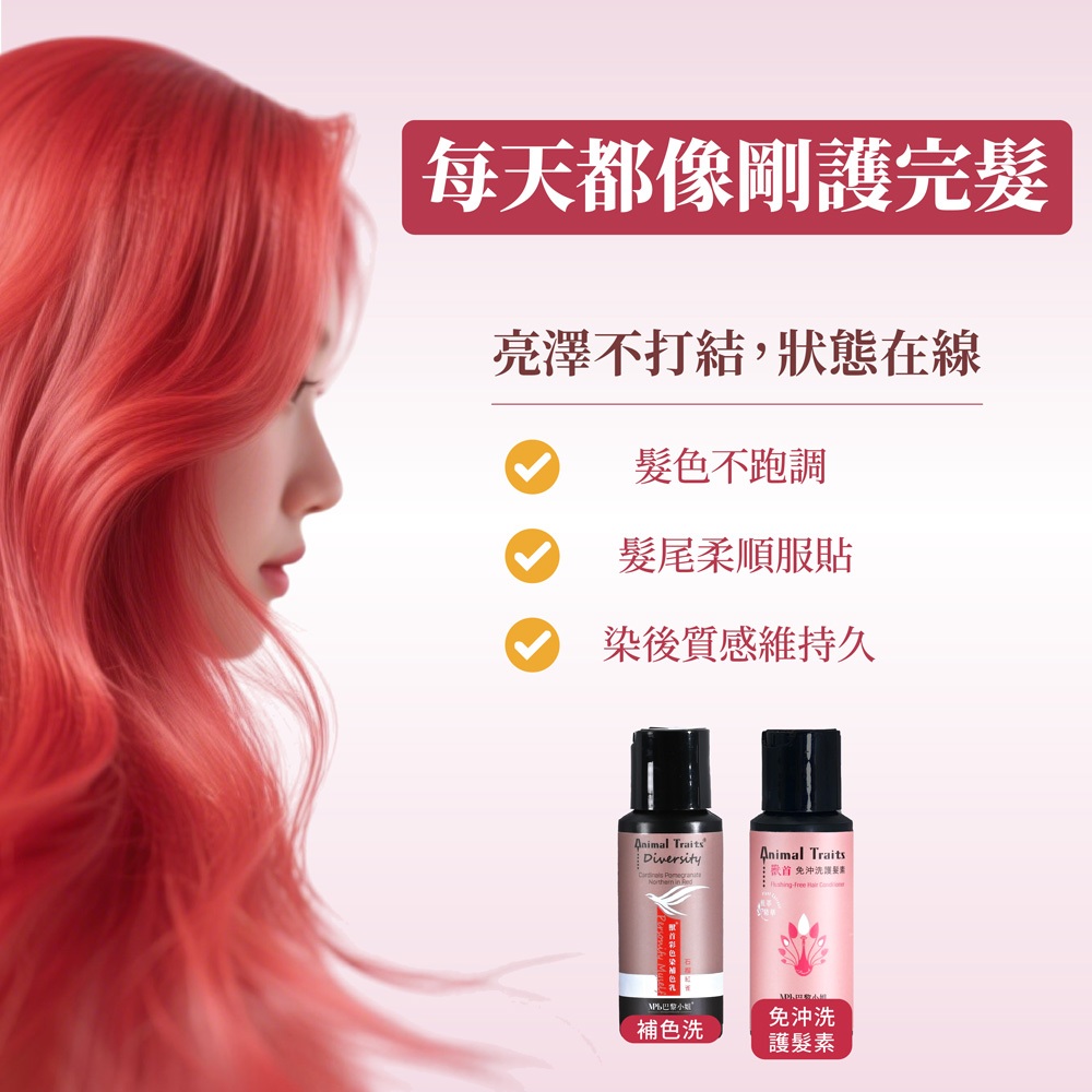 【MPB巴黎小姐】 隨身套組 補色乳60ML+獸首免沖洗護髮素 護色洗髮精 矯色洗髮精 染髮劑 泡泡染 補色洗 洗髮精藍灰山雀60ml,獸首護髮素50ml|石榴紅雀60ml,獸首護髮素50ml|翡綠繡眼60ml,獸首護髮素50ml|蜜桃粉鶴60ml,獸首護髮素50ml|炫紫蜂鳥60ml,獸首護髮素50ml|霧光白翁60ml,獸首護髮素50ml|琥珀棕鷹60ml(咖啡棕),獸首護髮素50ml|去黃金絲60ml(矯色洗),獸首護髮素50ml|柑橘琉璃60ml(橘色),獸首護髮素50ml|芋頭鸚鵡60ml(灰紫色),獸首護髮素50ml|晶灰鸚鵡60ml,獸首護髮素50ml|冰鑽藍鵲60ml,獸首護髮素50ml|奶茶鴛鴦60ml,獸首護髮素50ml|粉灰知更(粉灰紫)60ml,獸首護髮素50ml|莓果雀鶯(紫紅色)60ml,獸首護髮素50mlHair and Scalp Conditioner【MPB巴黎小姐】 官方旗艦店 沙龍級 美髮 熱蠟除毛 美睫
