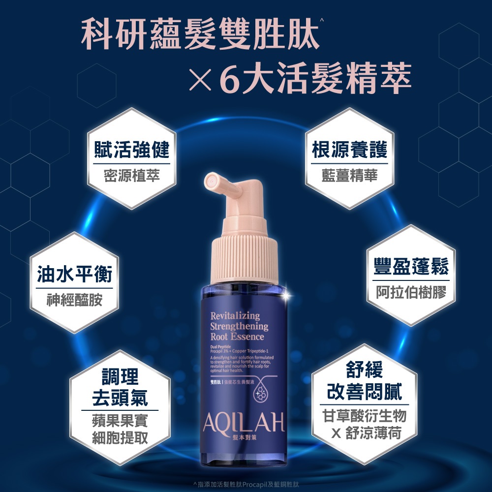 【美吾髮】AQILAH髮本對策 雙胜肽強健芯生豐盈彈韌養髮液50ml(單/2入組)奇蹟小藍瓶/健髮/蓬鬆/豐盈雙胜肽養髮液X1瓶,豐盈彈韌洗髮露50mlX3瓶|雙胜肽養髮液X2瓶,豐盈彈韌洗髮露50mlX3瓶|雙胜肽養髮液X1瓶,無|雙胜肽養髮液X2瓶,無Hair Treatment【美吾髮購物網】