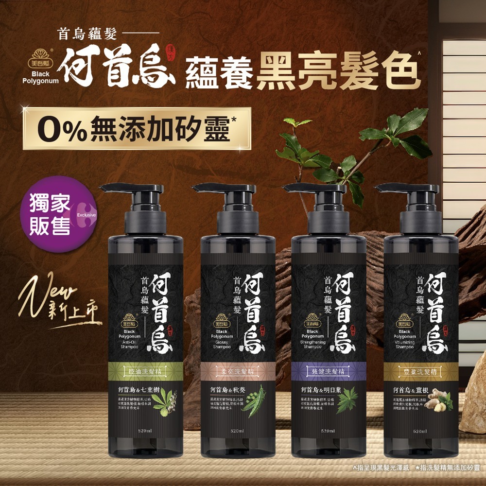 【美吾髮】首烏蘊髮 何首烏洗髮精520ml/瓶 多款任選(單瓶)無矽靈/豐盈/強健/控油/柔亮/薑/明日葉/秋葵/灰白髮控油洗髮精(何首烏×七葉樹)X1瓶,無|豐盈洗髮精(何首烏×薑根)X1瓶,無|強健洗髮精(何首烏×明日葉)X1瓶,無|柔亮洗髮精(何首烏×秋葵)X1瓶,無Shampoo【美吾髮購物網】