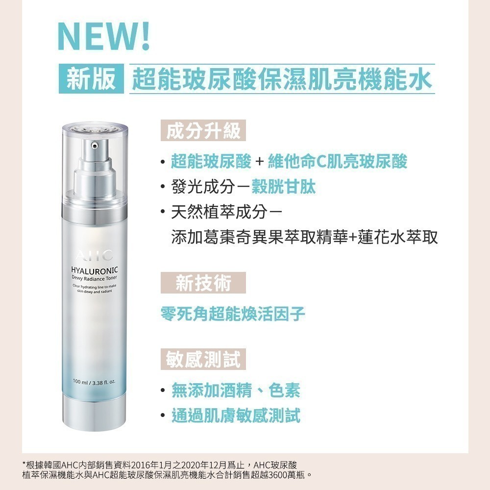 【AHC官方旗艦店】超能玻尿酸保濕肌亮機能水100ml機能水x1TonerAHC 官方旗艦店