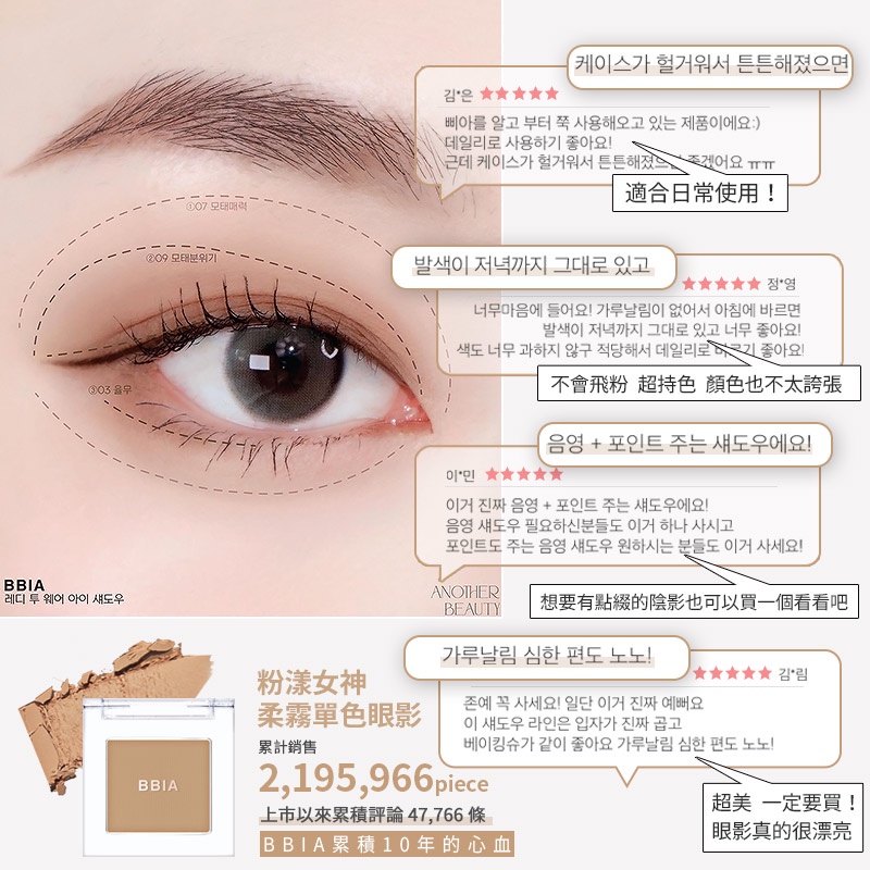 【Bbia 碧娥】新款 BBIA 柔霧單色眼影 Bbia 粉漾女神柔霧單色眼影10色 霧面單色眼影 即期柔霧#03 灰米色 眉粉兼用淺灰米眉|柔霧 #04 霧紫中性粉色調|柔霧 #05 摩卡棕 眉粉兼用淺棕眉|柔霧 #08 桃粉色 腮紅兼用|柔霧 #09 霧棕紫 淡淡復古玫瑰棕|短效#01 棕色調陰影疊擦使用26.05|柔霧 #02 棕紅紫 眉粉兼用紅棕眉|柔霧 #06 柔嫩杏色 腮紅兼用|柔霧 #07 粉棕色 腮紅兼用|短效#10 自然陰影黃膚色適合26.07|即期#09 霧棕紫 2025.08|即期 #02 棕紅紫 2025.11EyesBBIA & EGLIPS 台灣官方旗艦店(台灣唯一總代理)