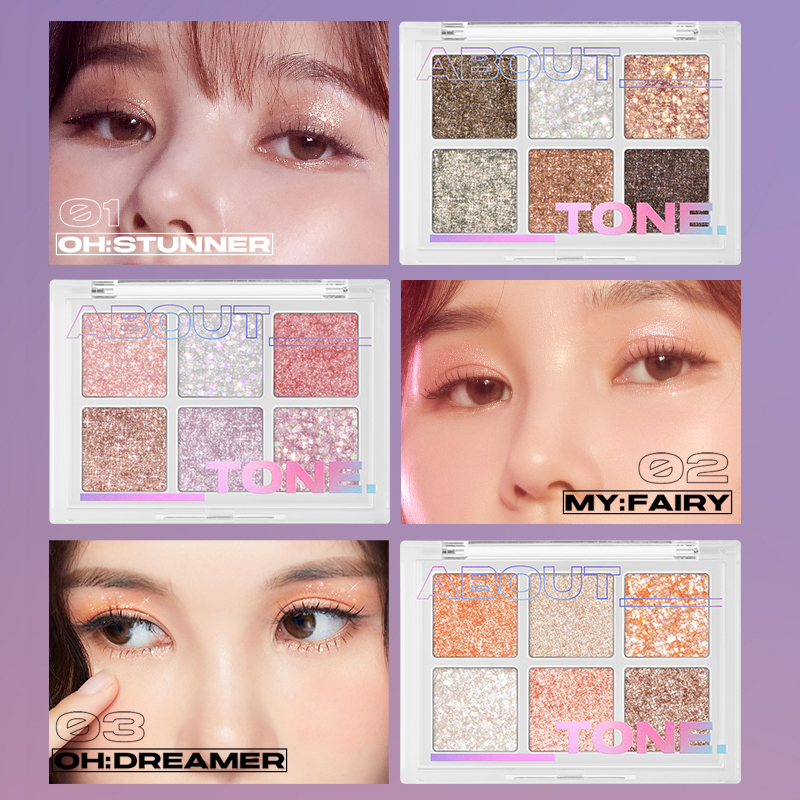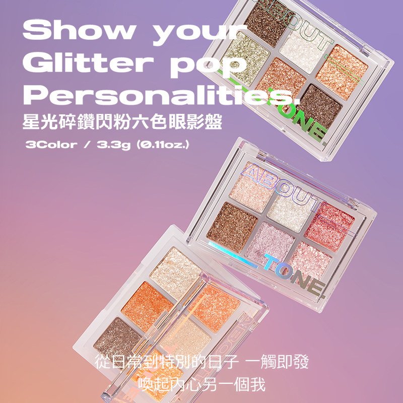 【ABOUT_TONE】新品 星光碎鑽閃粉六色眼影盤 3款 六色眼影盤 超細閃亮片#01 強烈又帥氣中性閃亮調色盤|#02 漂亮純真氣質閃亮調色盤|#03 清爽夢幻暖暖閃亮調色盤EyesBBIA & EGLIPS 台灣官方旗艦店(台灣唯一總代理)