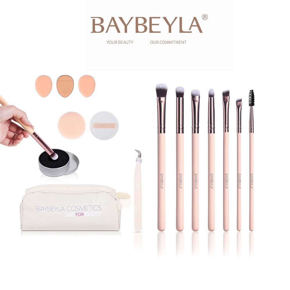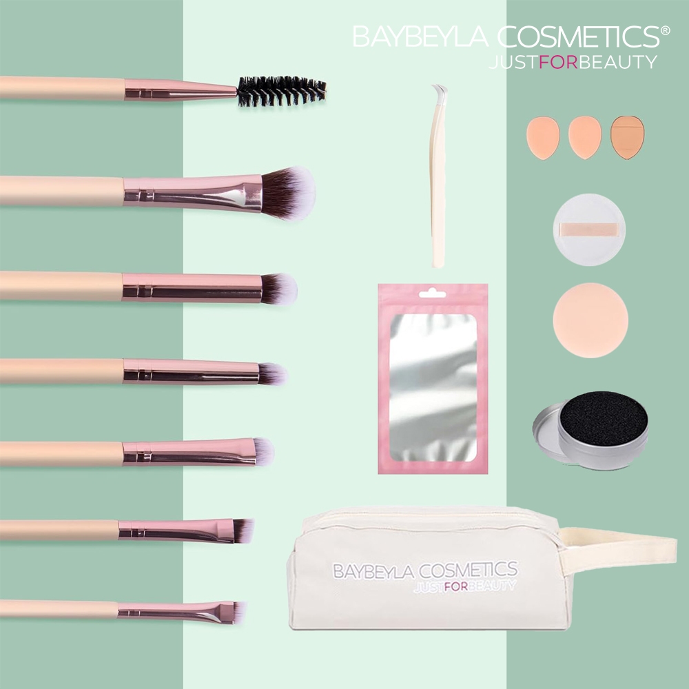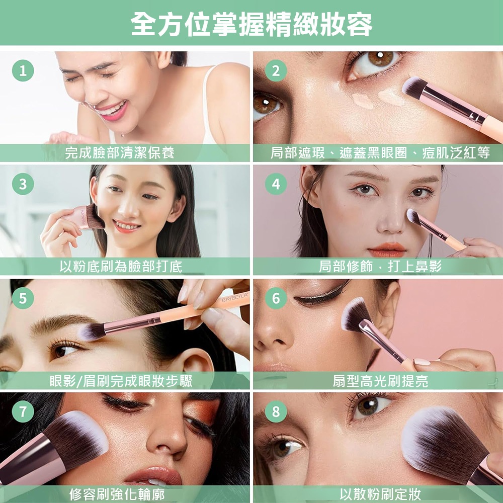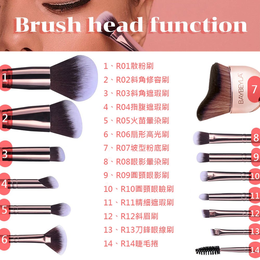 BAYBEYLA 貝貝拉 玫瑰金纖維毛眼眉精修套刷14件組【隔日到貨】化妝刷 刷具 套刷 拇指粉撲 氣墊粉撲【超值包】眼眉精修套刷14件組Makeup AccessoriesBAYBEYLA 貝貝拉-專業彩妝刷具品牌