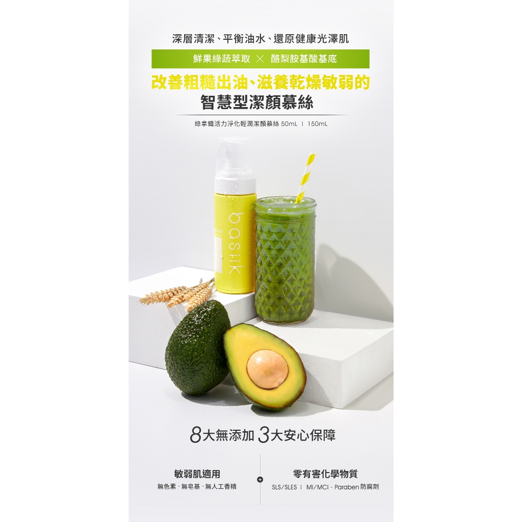 basiik 綠拿鐵活力淨化輕潤潔顏慕絲 150mLx3basiik 綠拿鐵活力淨化輕潤潔顏慕絲 150mLx3Facial Cleanserbasiik 直營旗艦店