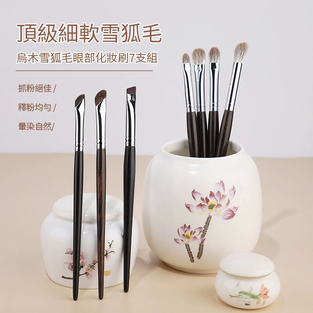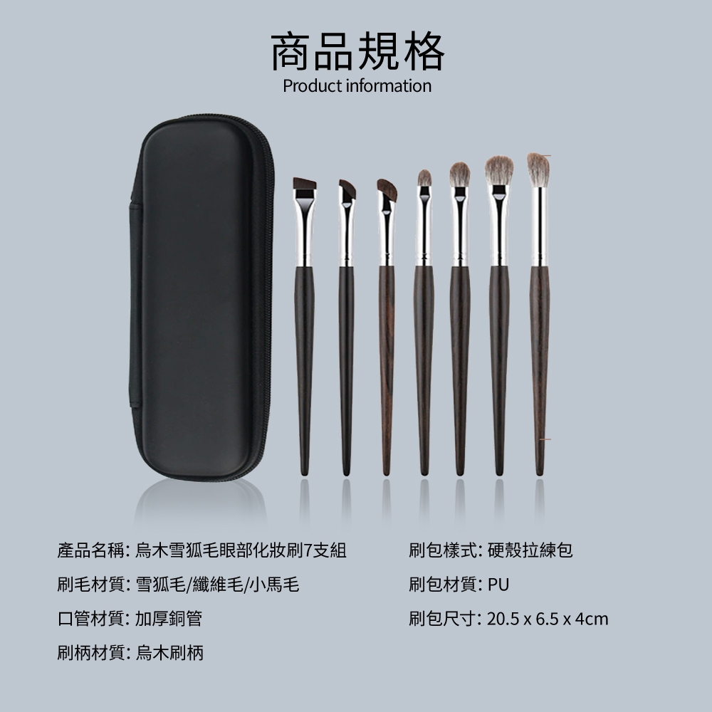 BAYBEYLA 貝貝拉 烏木雪狐毛眼部套刷7件組【隔日到貨】眼影刷 刀鋒刷 暈染刷 眼線刷 化妝刷【送硬殼刷包】烏木雪狐毛眼部套刷7件組Makeup AccessoriesBAYBEYLA 貝貝拉-專業彩妝刷具品牌