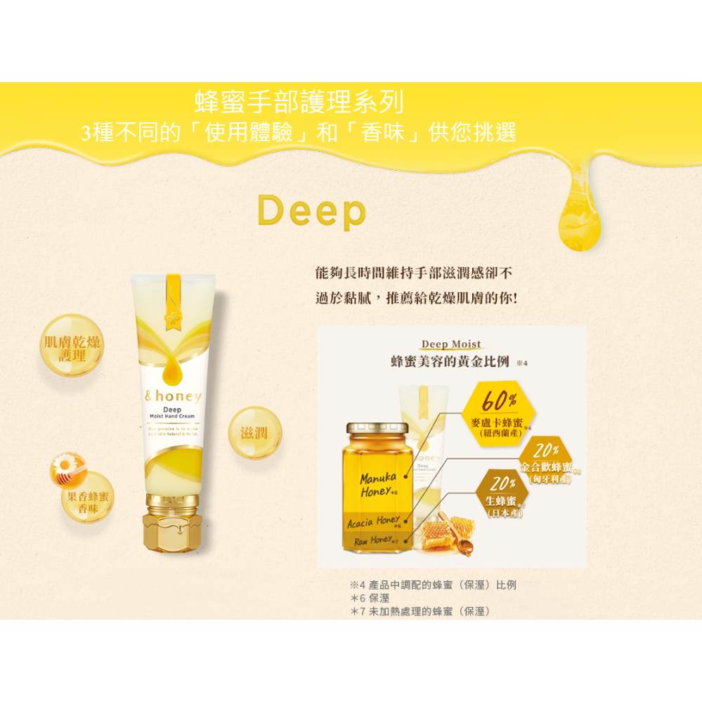 &honey Deep、Melty、Creamy 蜂蜜高保濕護手霜 3款Deep 蜂蜜高保濕潤澤護手霜|Melty 蜂蜜高保濕輕盈護手霜|Creamy 蜂蜜高保濕極潤護手霜Hand Care&honey 官方旗艦店