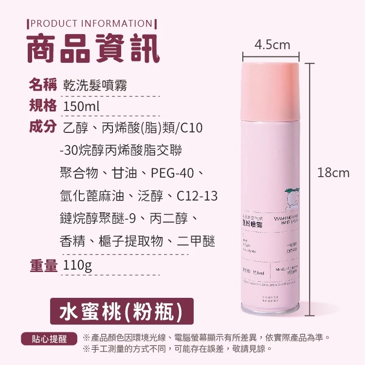 乾洗髮噴霧 150ml 免洗頭髮 噴霧 乾髮噴霧 免水洗髮 洗髮噴霧 控油蓬鬆神器 【小麥購物】【S167】水蜜桃香|150ml|清新|150mlOthers 小麥購物