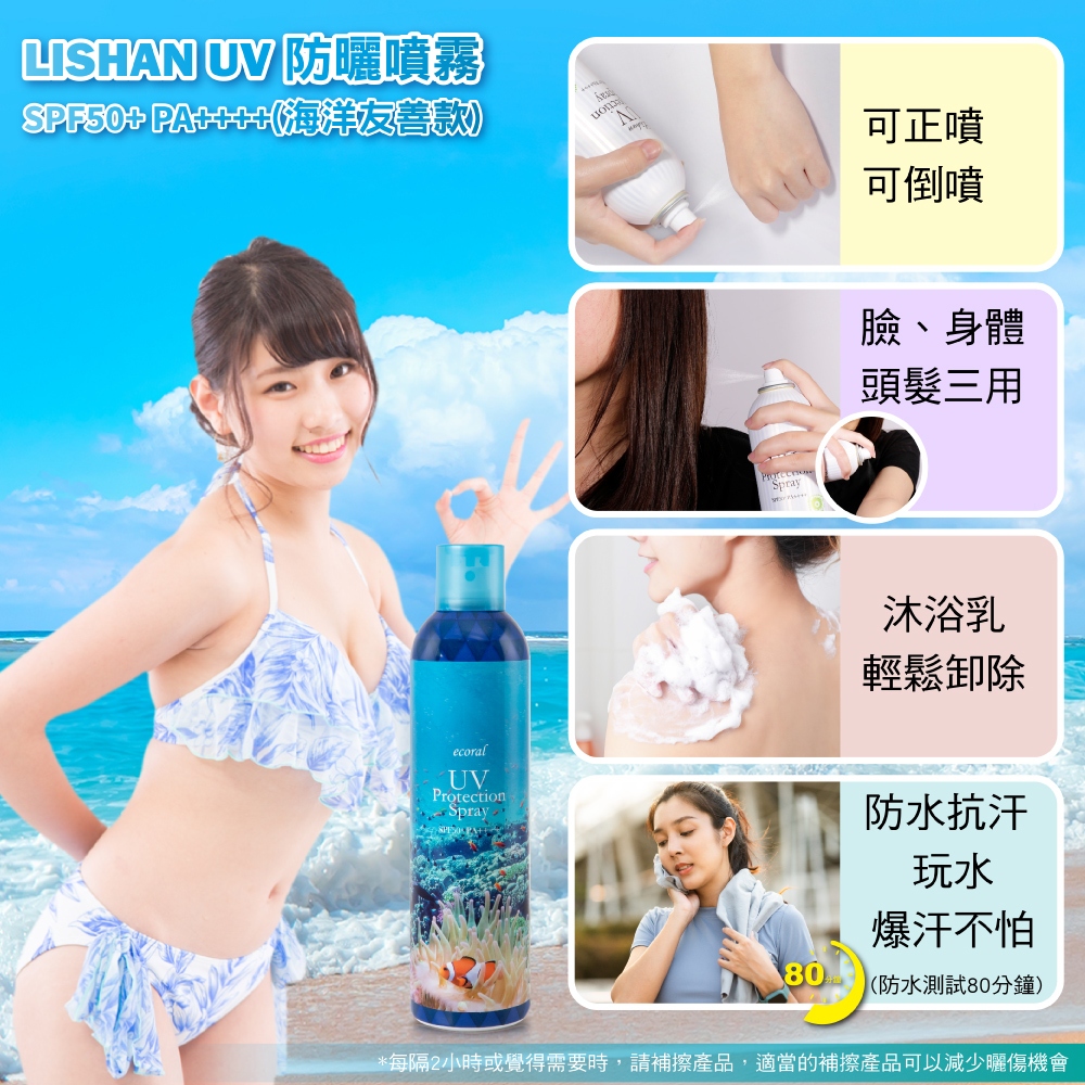 LISHAN UV 防曬噴霧 SPF50+ 200G(海洋友善款)EC 涼感防曬 清爽 防曬 海洋友善 小花防曬 環保LISHAN UV 防曬噴霧 SPF50+ 200G(海洋友善款)EC 涼感防曬 清爽 防曬 海洋友善 小花防曬 環保Sun Care【官方直營】好日子 HOWDAY.好市集