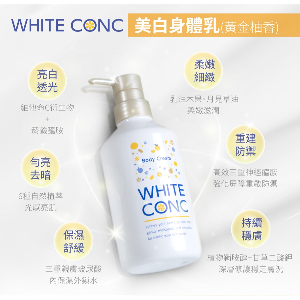 【WHITE CONC】美白身體乳(黃金柚香)|美白|乳液|身體乳|水凝乳|亮白|柚香|美白身體乳【WHITE CONC】美白身體乳(黃金柚香)|美白|乳液|身體乳|水凝乳|亮白|柚香|美白身體乳Body Cream, Lotion & Butter【官方直營】好日子 HOWDAY.好市集