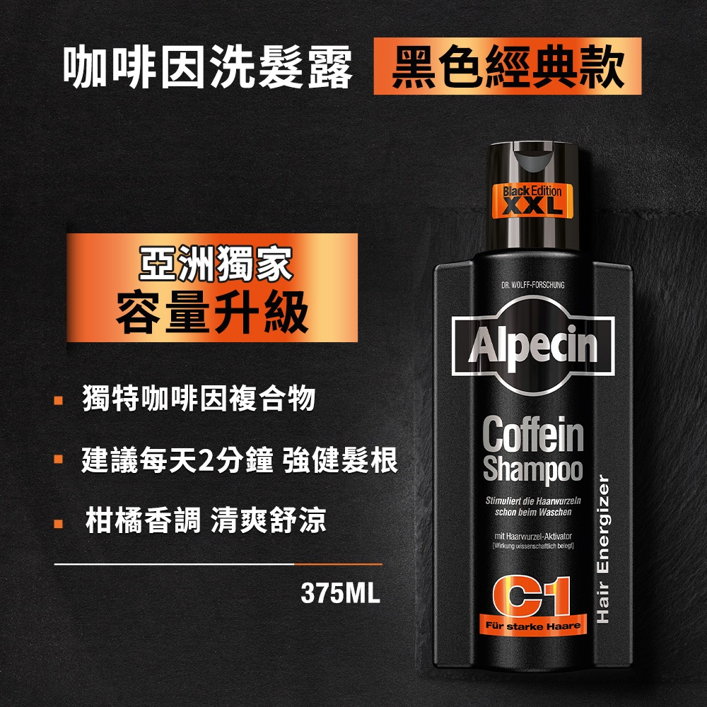 Alpecin Black C1咖啡因洗髮露黑色經典款375mlAlpecin Black C1咖啡因洗髮露黑色經典款375mlShampooAlpecin/Plantur/Bioniq貝歐尼-Dr. Wolff官方商城