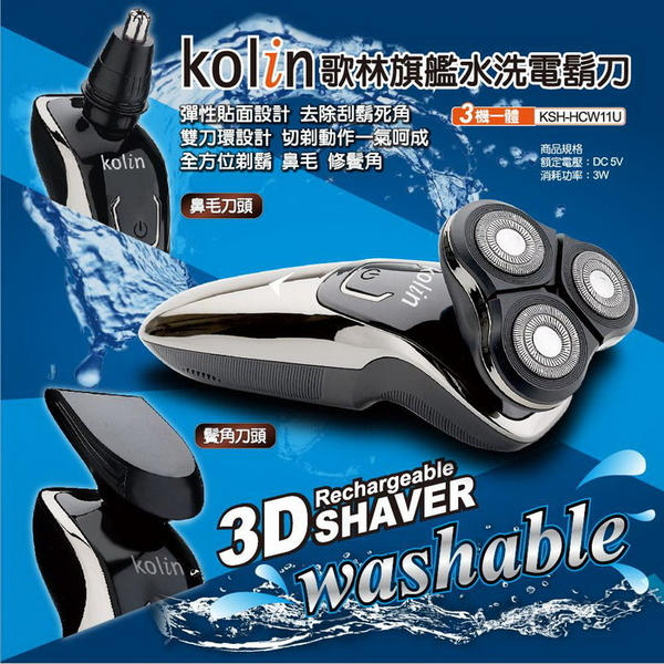 【歌林 Kolin】USB旗艦水洗電鬍刀 刮鬍刀 鼻毛刀父親節 KSH-HCW11U【歌林 Kolin】USB旗艦水洗電鬍刀 刮鬍刀 鼻毛刀父親節 KSH-HCW11UShaving & GroomingAll Sale電器共和國