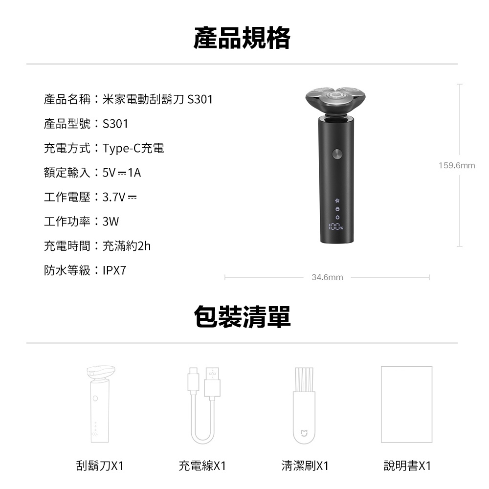 小米 米家電動刮鬍刀S301【台灣現貨】刮鬍刀 剃鬚刀 剃鬍鬚 便攜剃鬚 電動剃毛刀 三刀頭刮鬍刀 刮鬍子 男士刮鬍刀米家電動刮鬍刀S301Shaving & GroomingAP 3C旗艦館