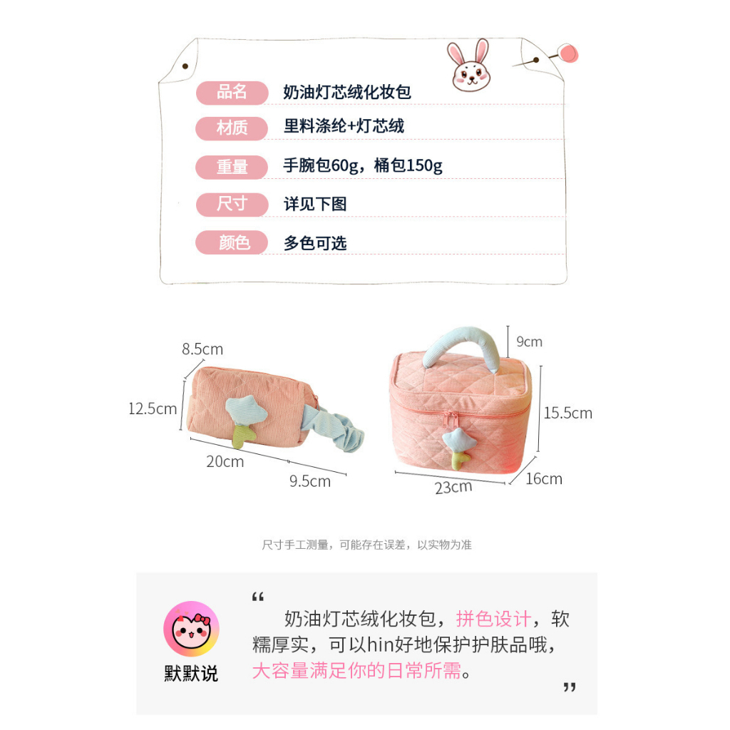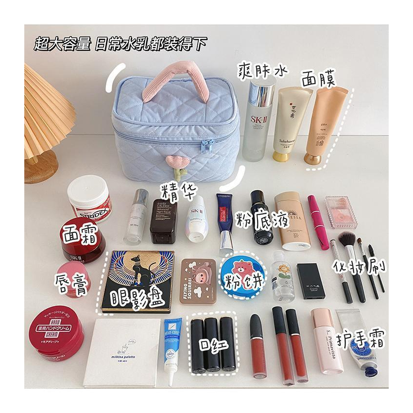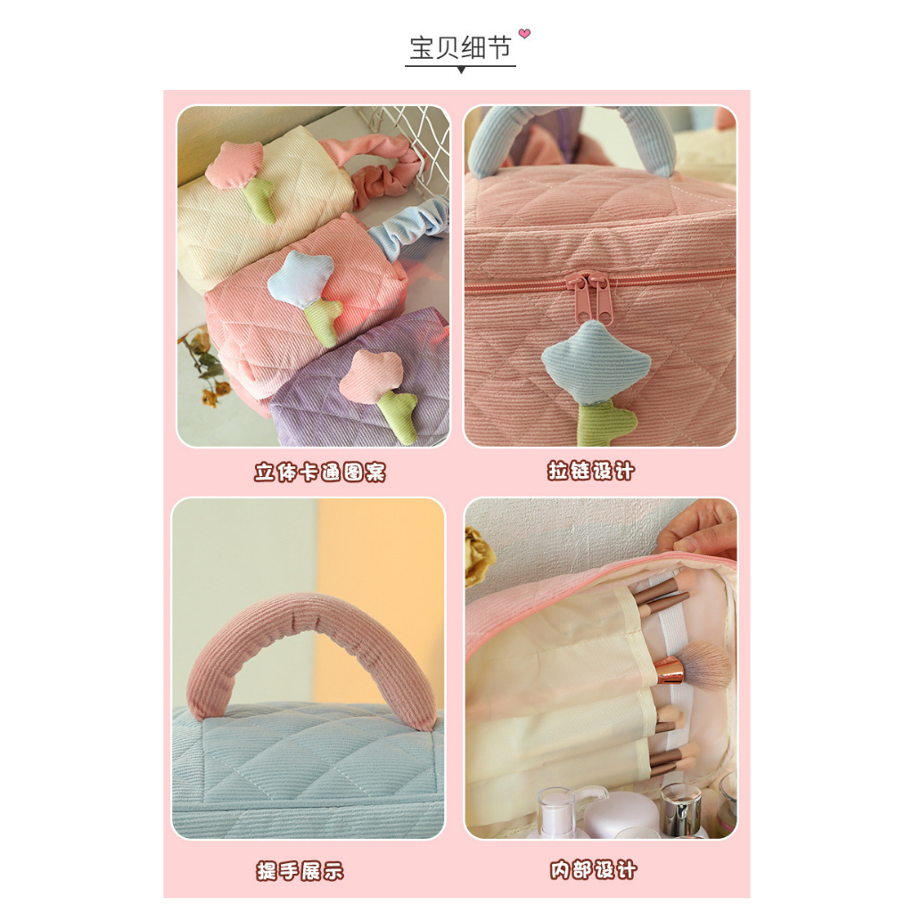 ANNE丨燈芯絨包 手提收納包 化妝包 手提包 小花化妝包【WG5046】 化妝包 可愛高級感 大容量包 少女包 洗漱包米色|天藍|粉色|紫色Makeup AccessoriesANNE 孕婦裝 孕婦內衣褲 專櫃平替