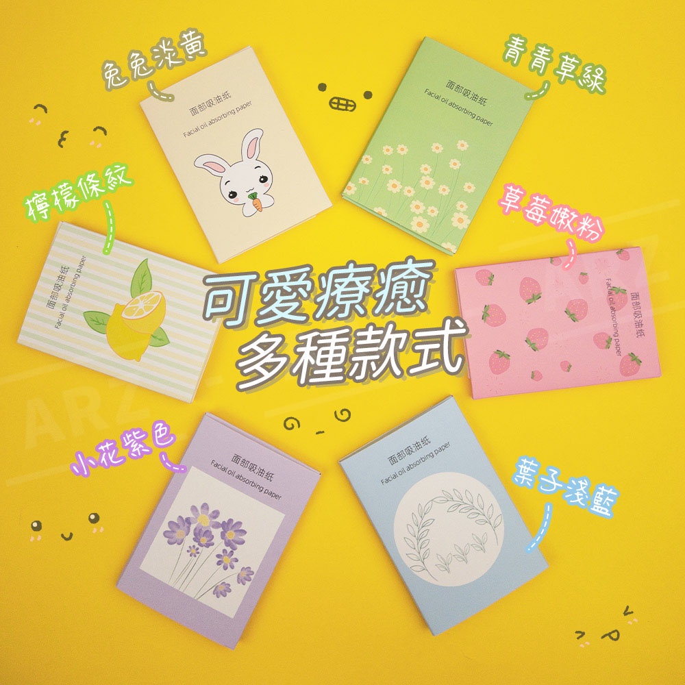 吸油面紙 50張【ARZ 實拍現貨】【D277】面部吸油紙 控油 補妝 護膚 吸油紙 臉出油 臉部清潔 清爽吸油面紙小花紫色|草莓嫩粉|檸檬條紋|兔兔淡黃|葉子淺藍|青青草綠Blotting PaperARZ行動商城